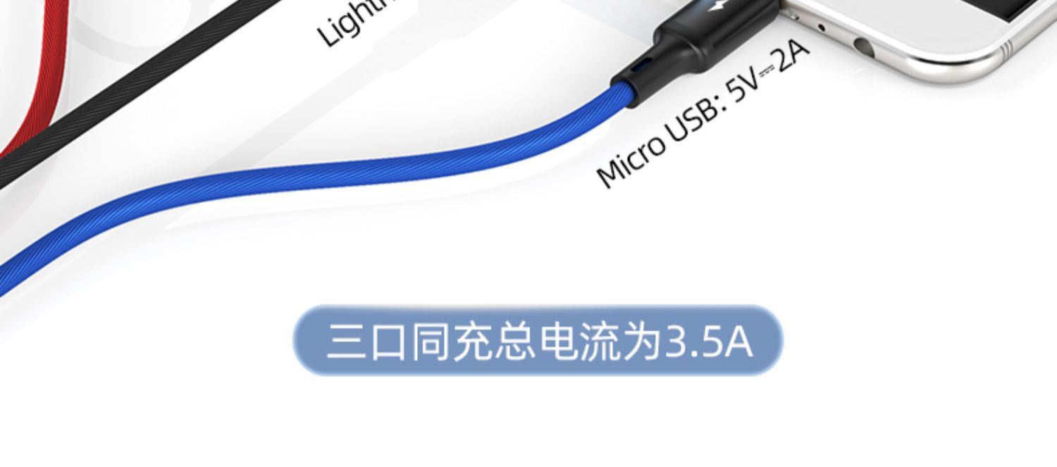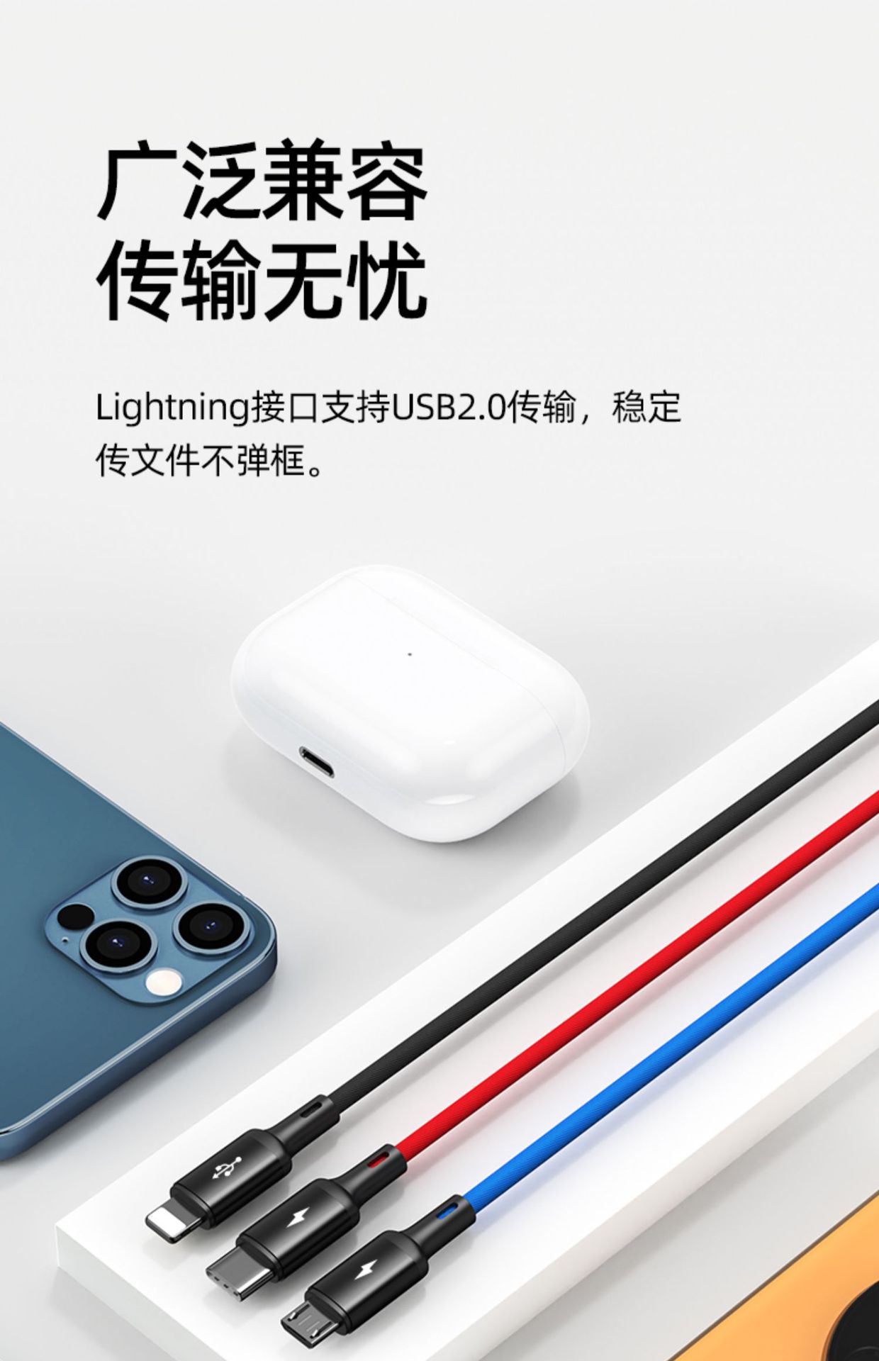 【1.2米】多彩編織一拖三數據線(LH-AP01-1800)