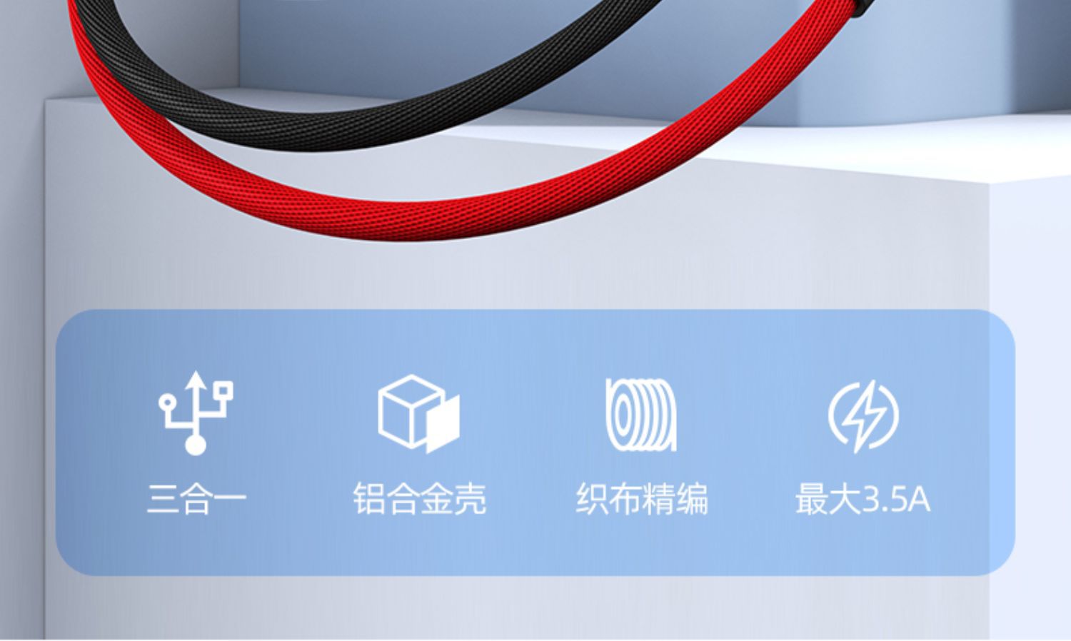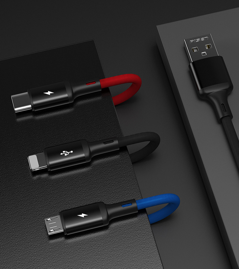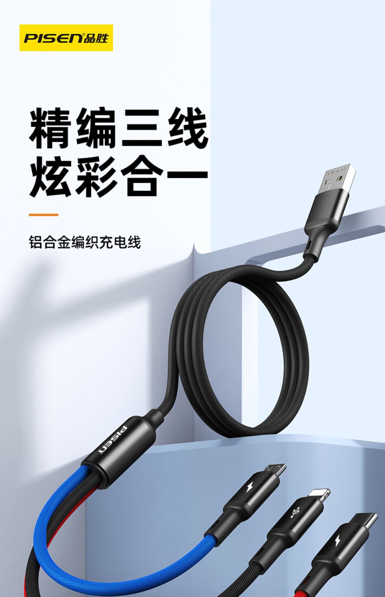 【1.2米】多彩編織一拖三數據線(LH-AP01-1200)