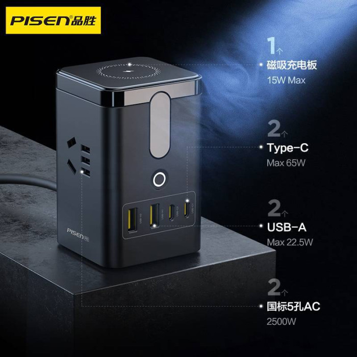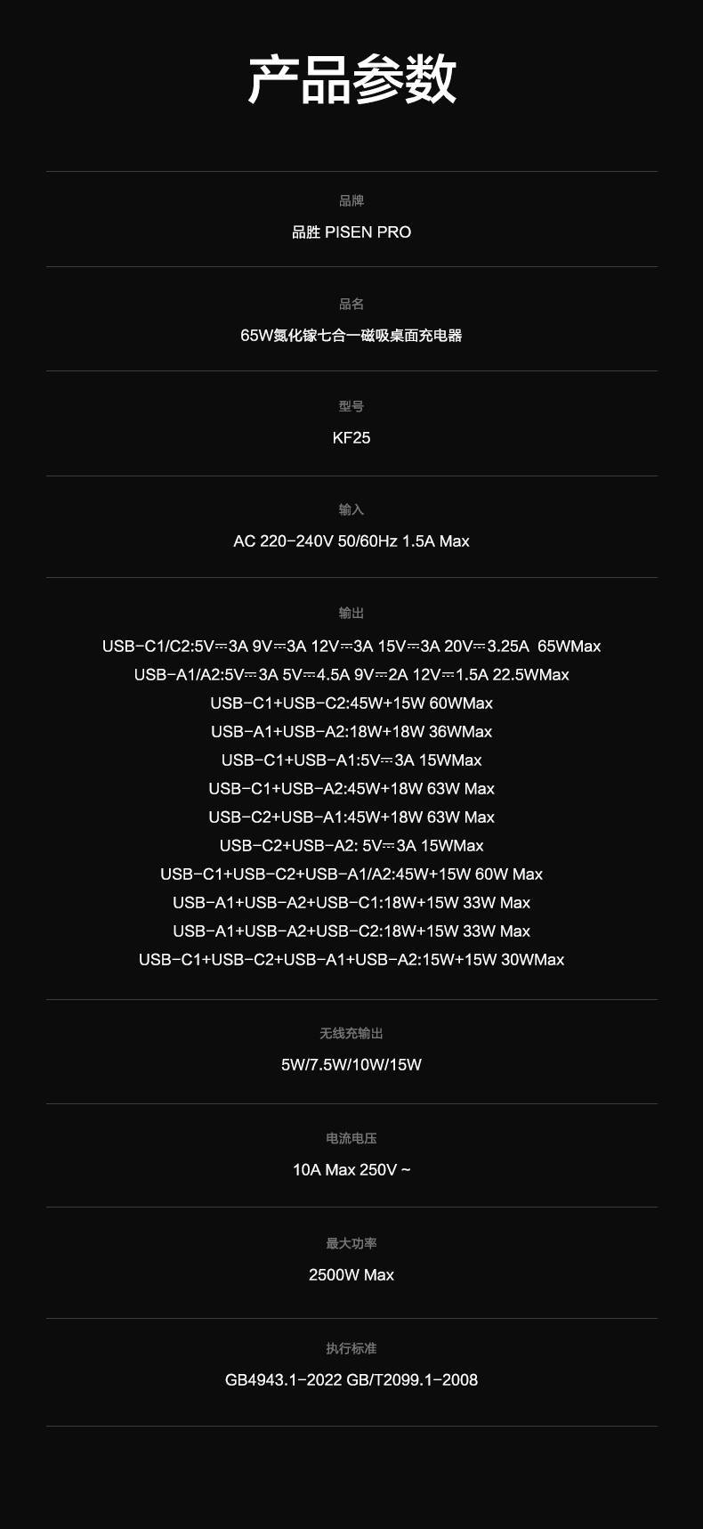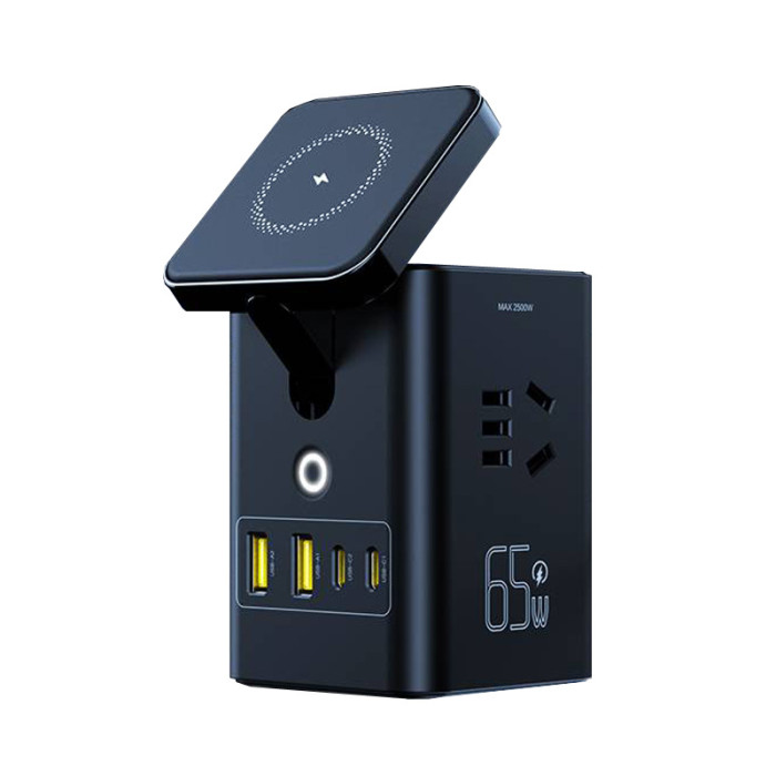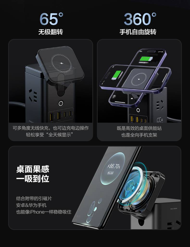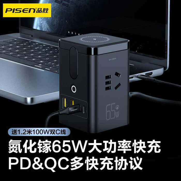 品勝黑武士氮化鎵充電器65W快充頭多口桌面插座8合1磁吸無線座充