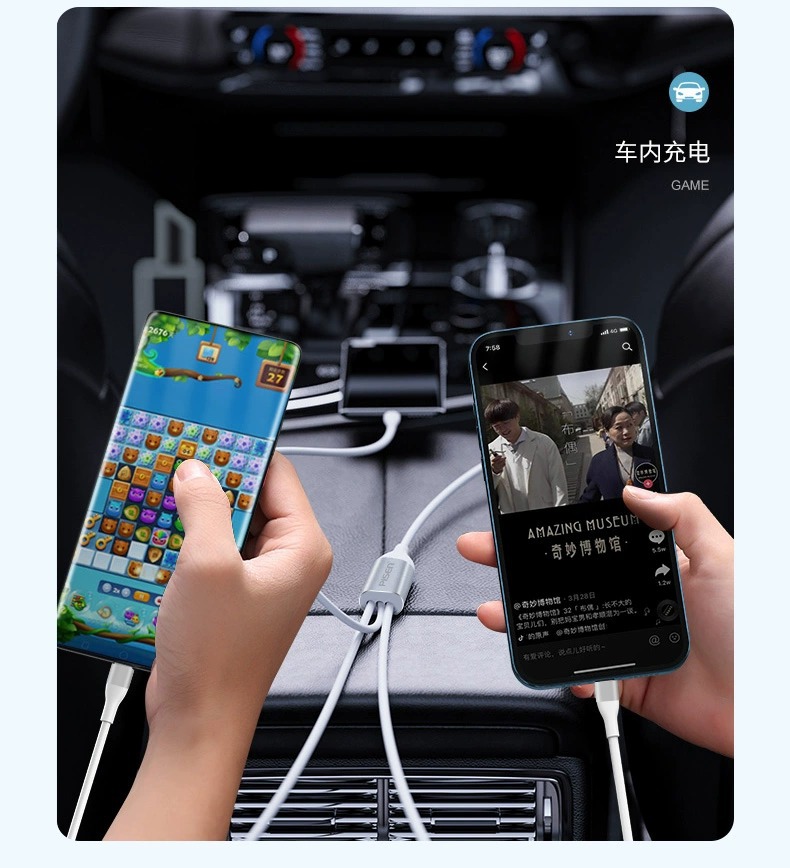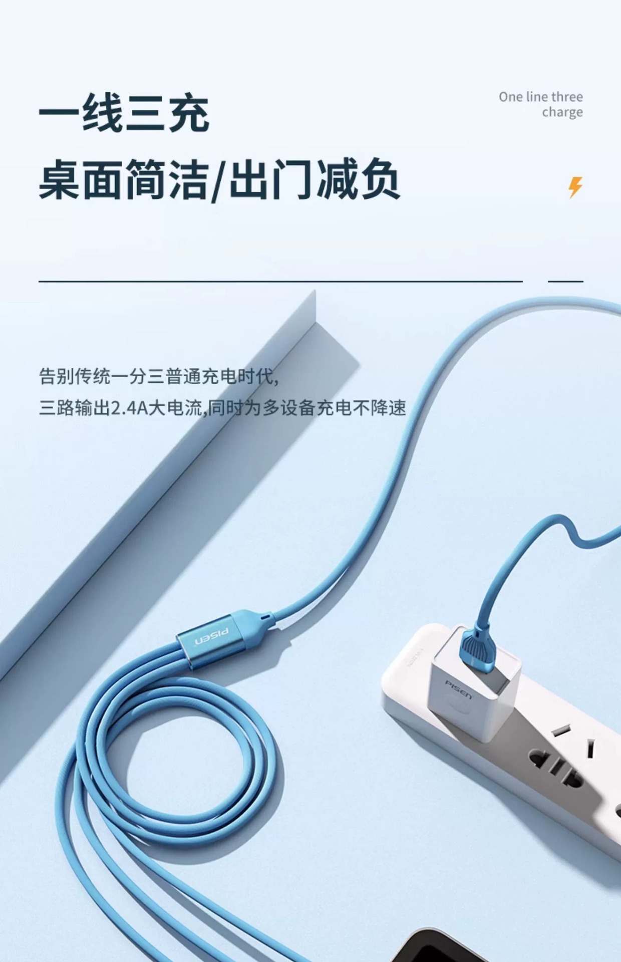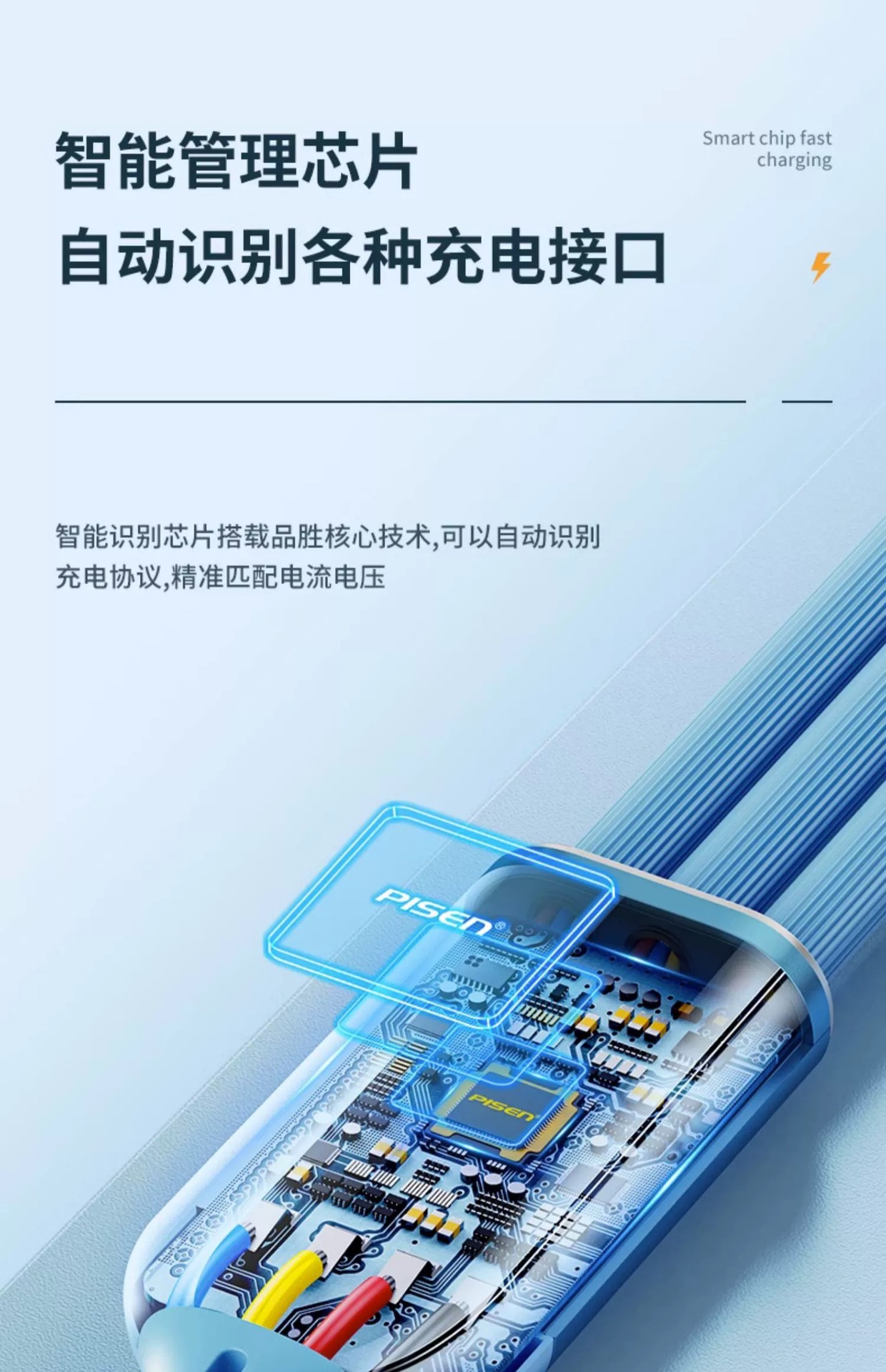 品勝三合一適用蘋果15快充66w充電線車用安卓IPhone多功能6A通用