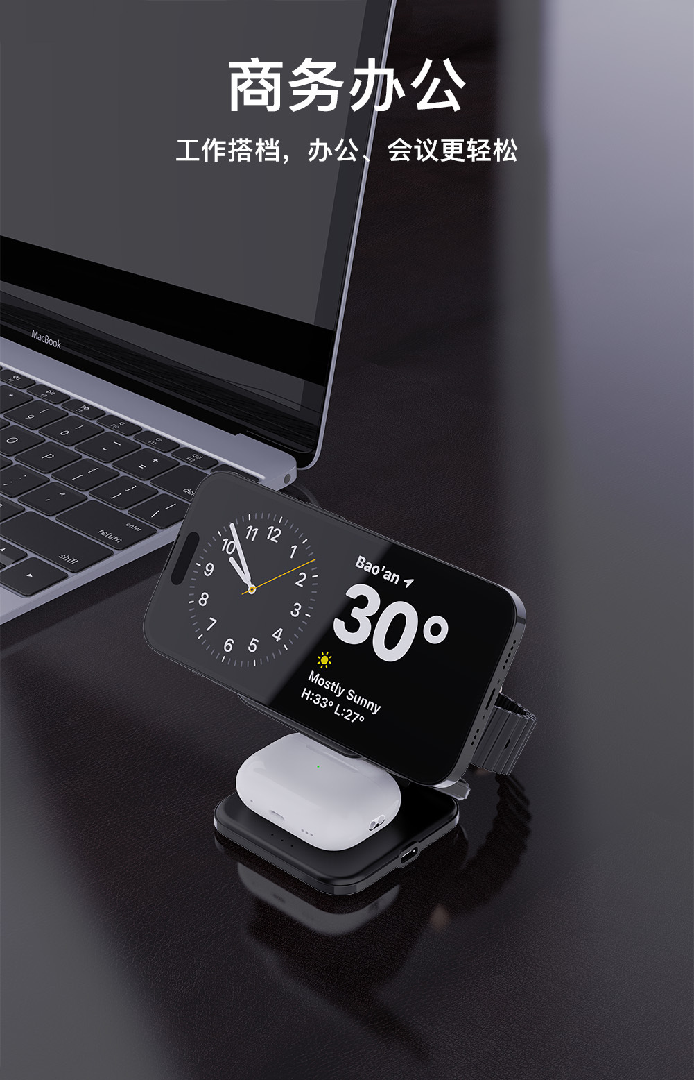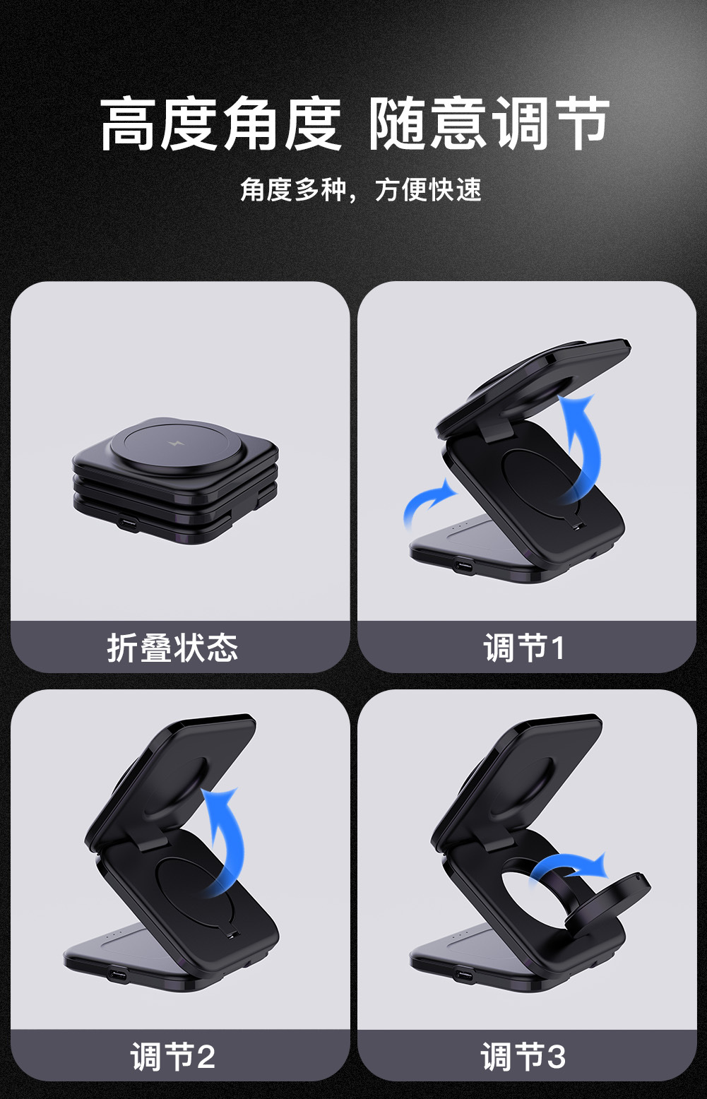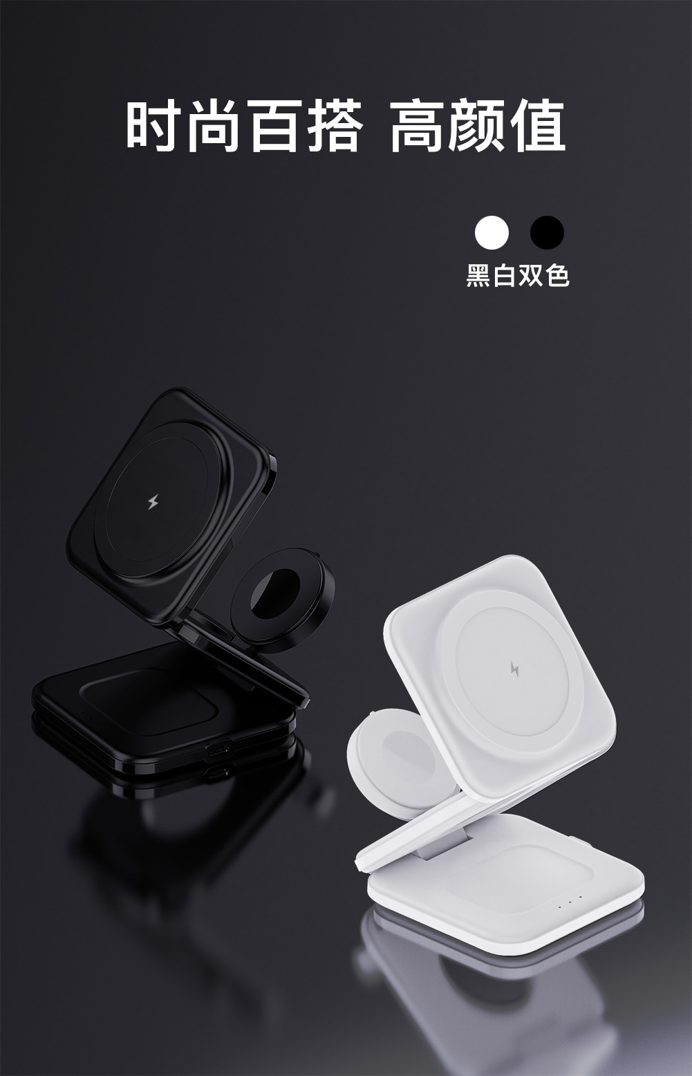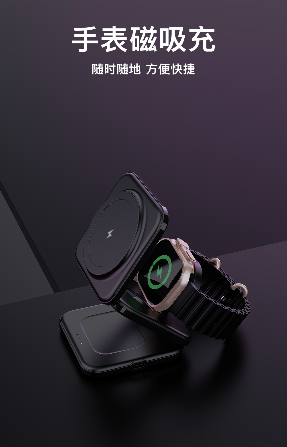 三合一磁吸折曡小巧無線充電器適用蘋果耳機手錶多功能無線快充