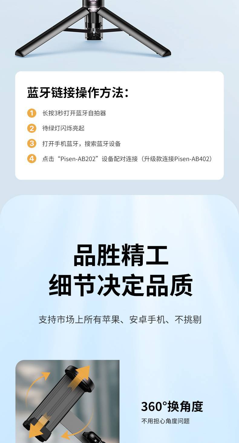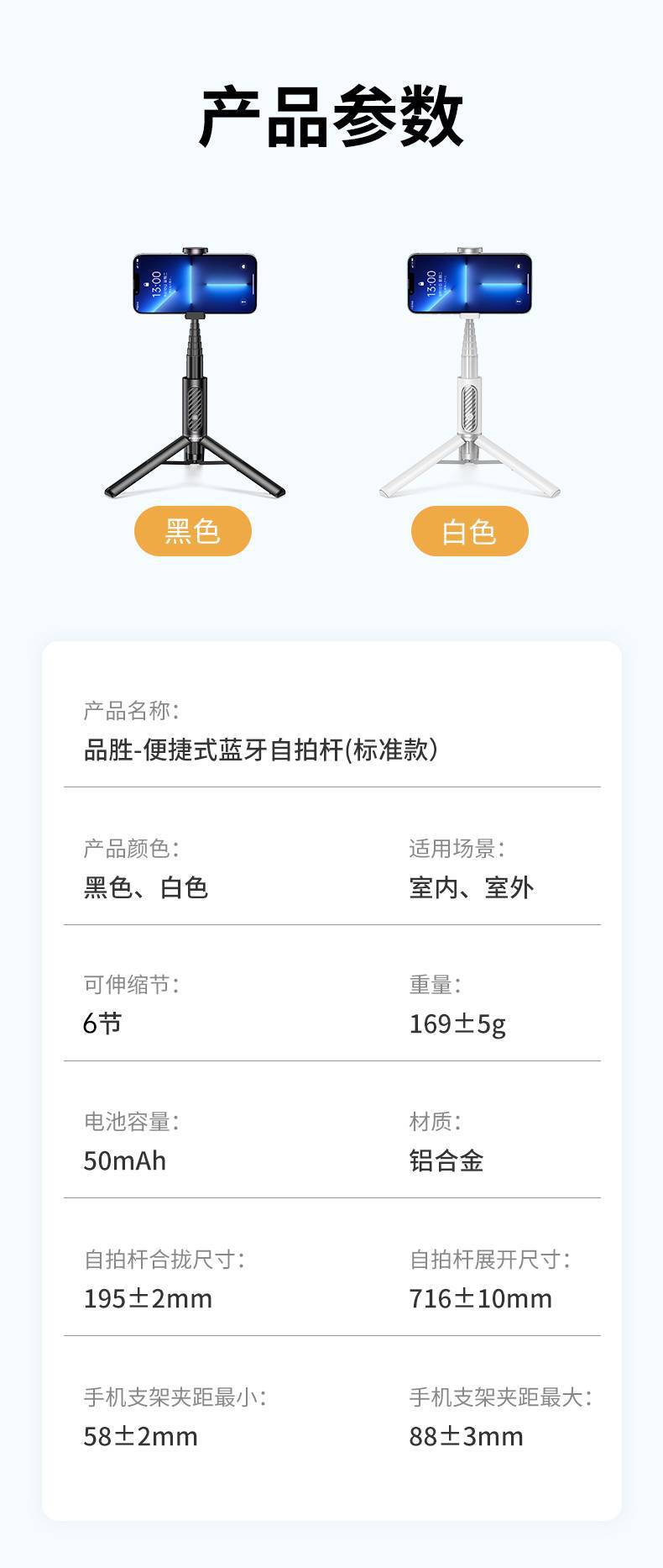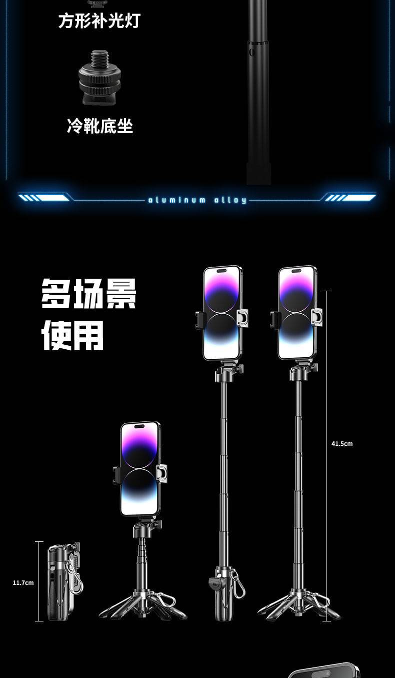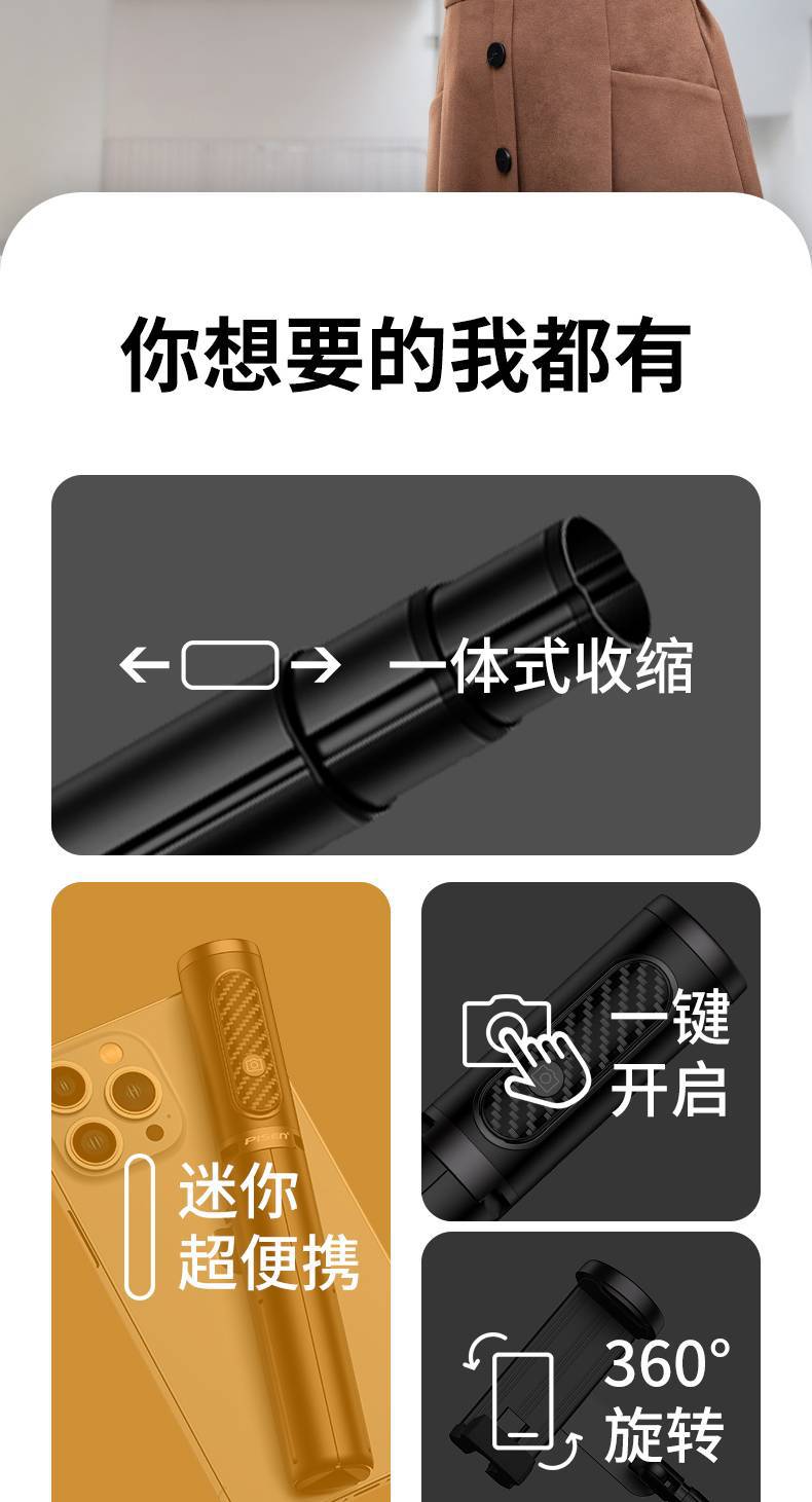 品勝手機自拍桿三腳架2024新款通用旅遊可攜式360度旋轉vlog拍攝神
