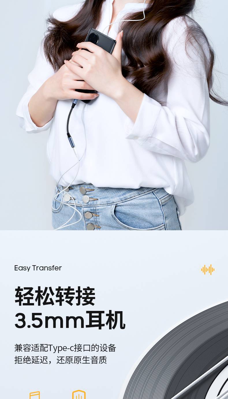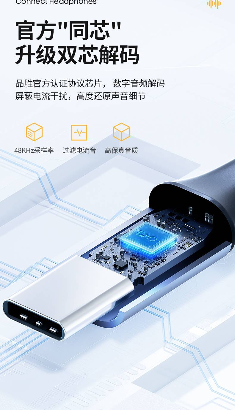品勝Type-C轉3.5mm圓孔耳機轉接線頭音頻數字解碼適用蘋果16P電腦