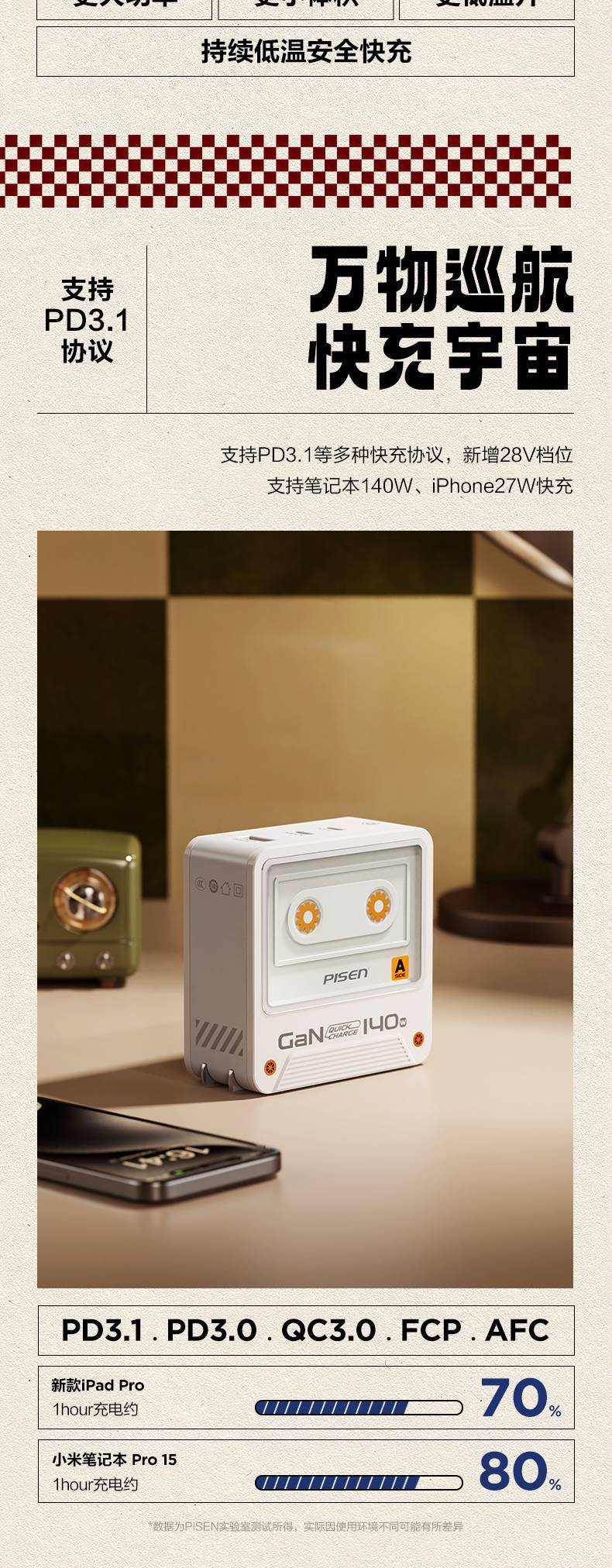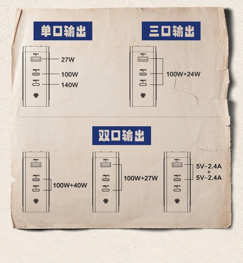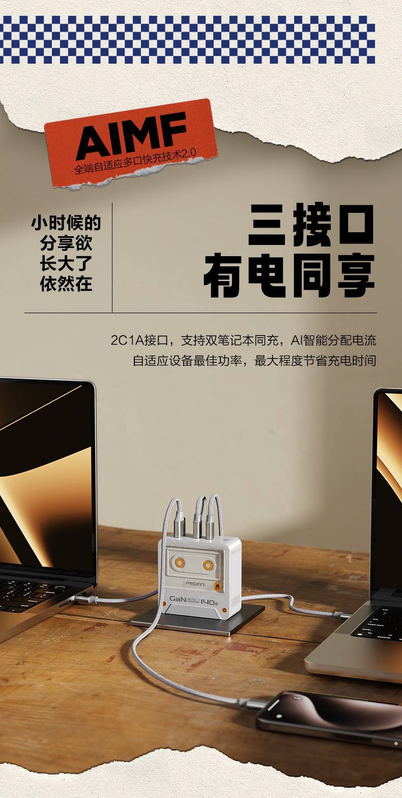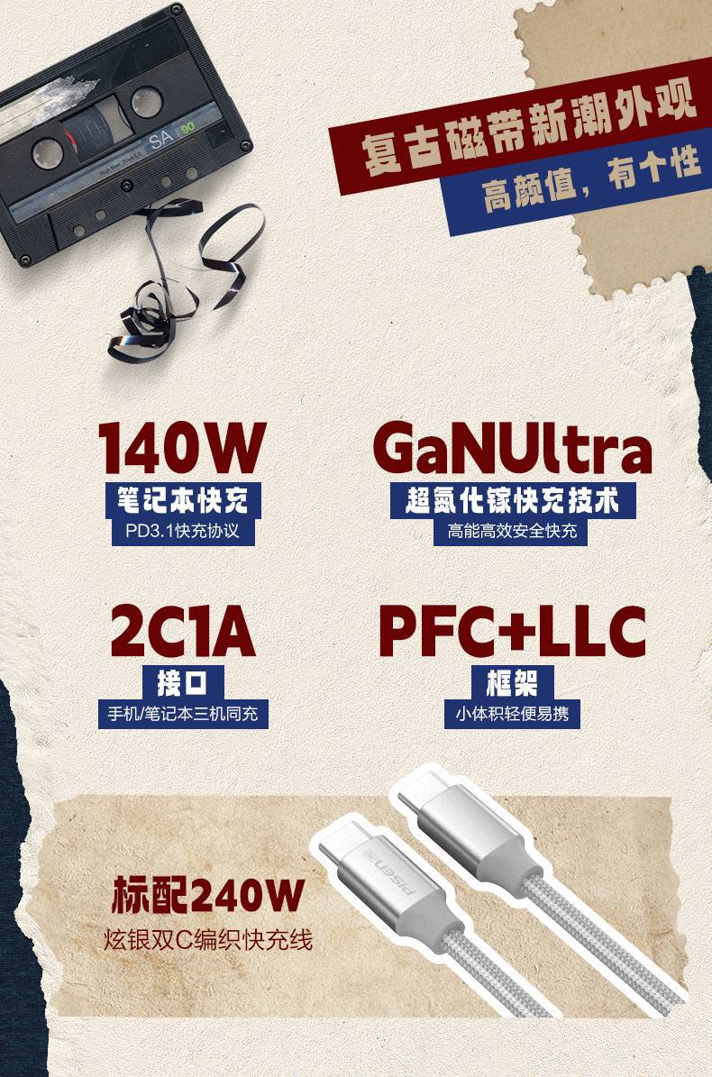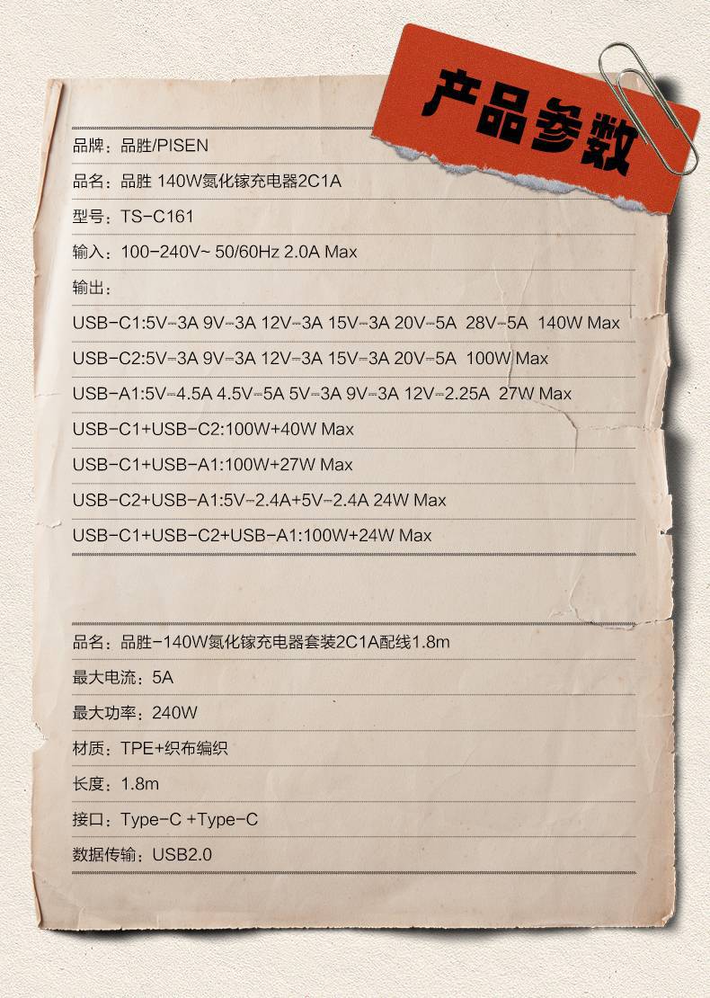 品勝140W氮化鎵充電器頭PD3.1多口三口GaN適用蘋果華爲聯想筆電