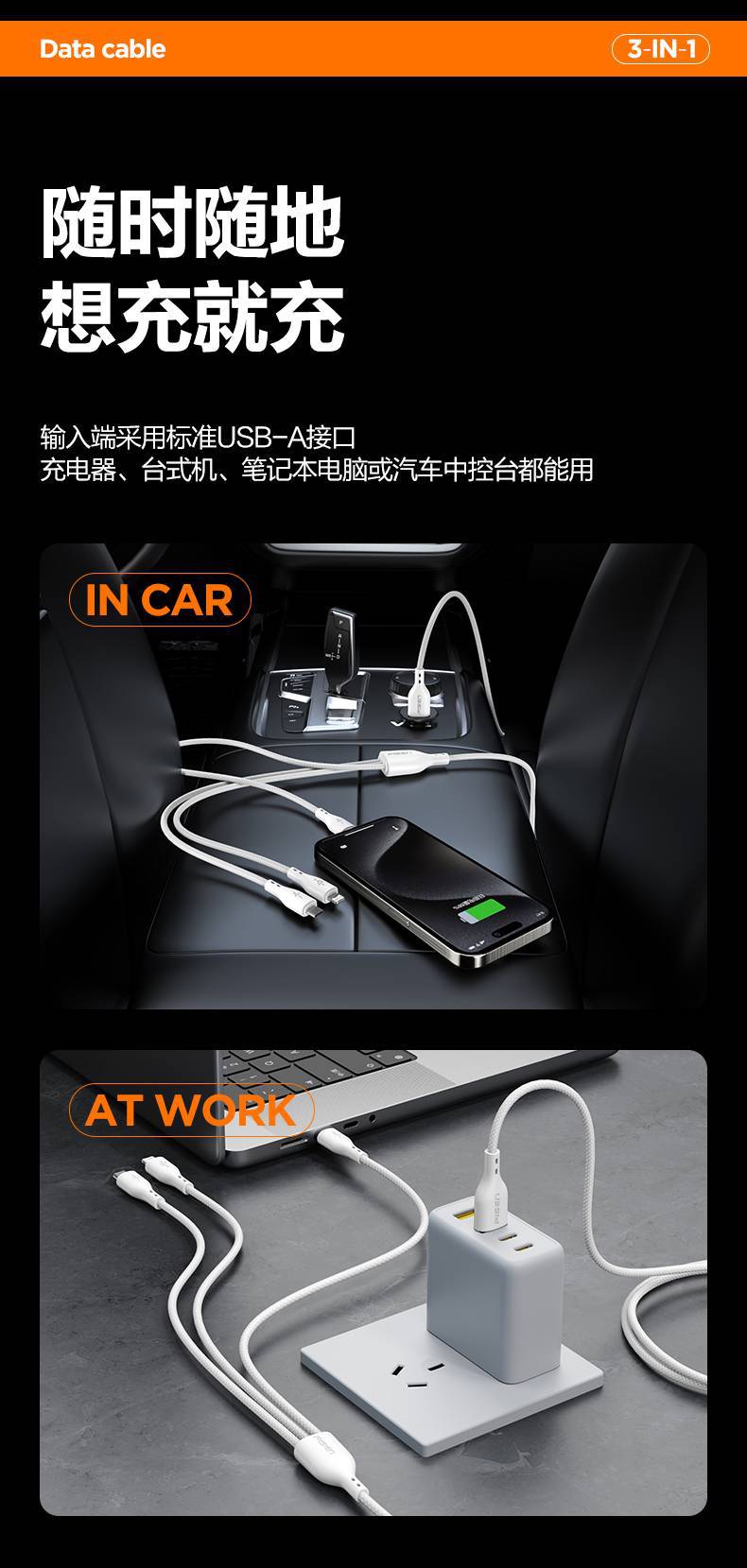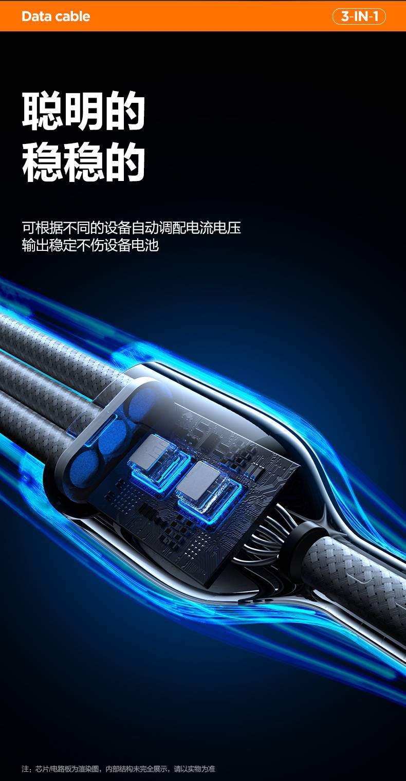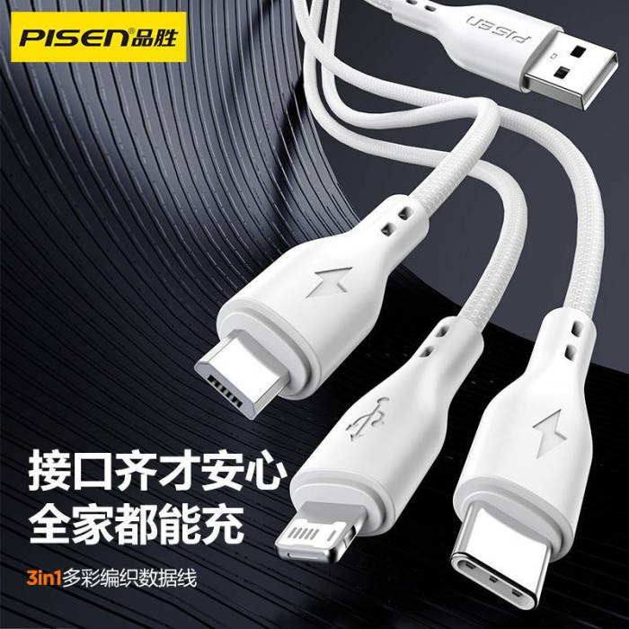 品勝充電線三合一數據線快充一拖三適用蘋果IPhone華爲小米安卓手