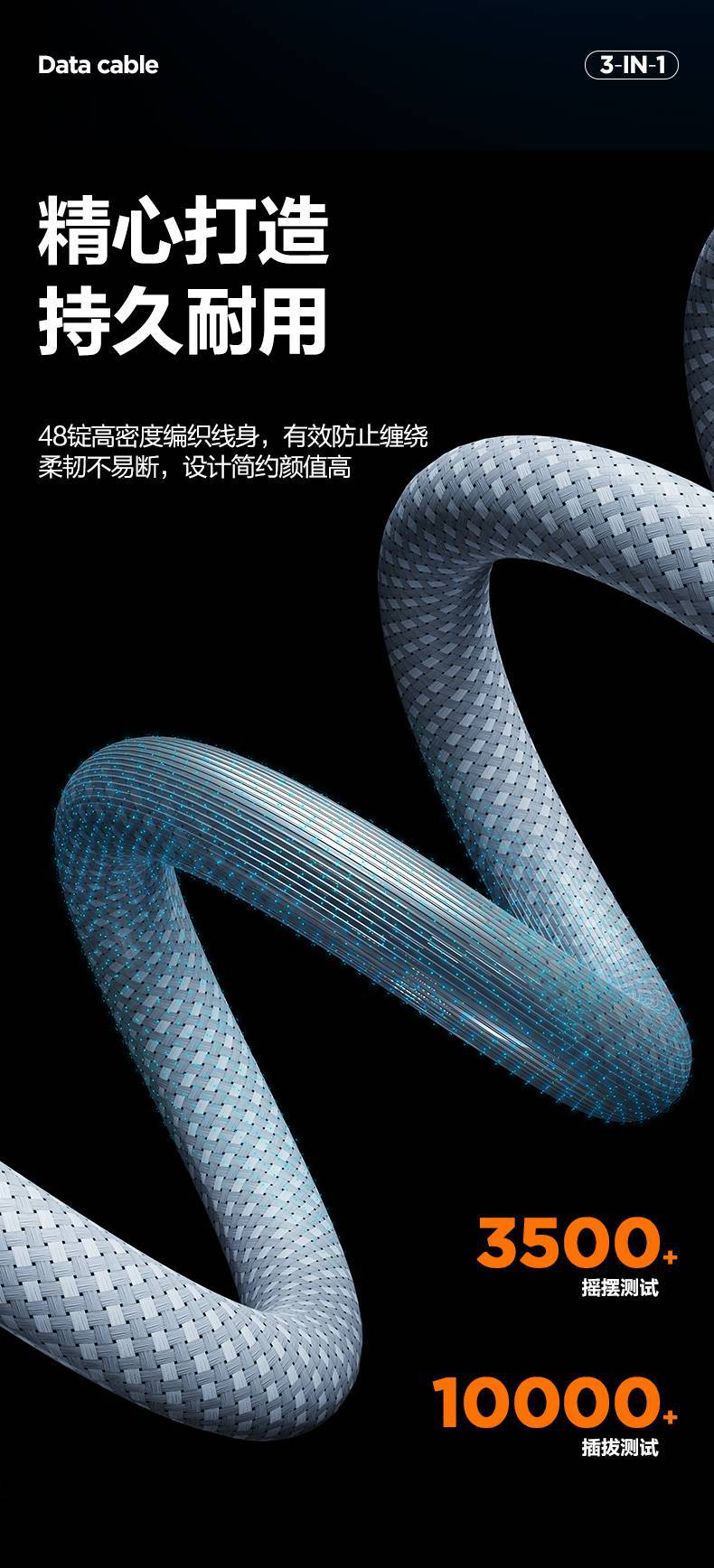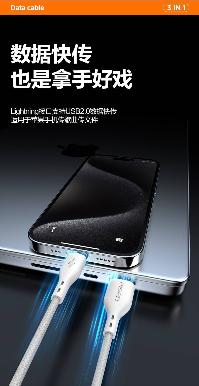 【1.2米】三合一多彩編織數據線(AP26-1200)