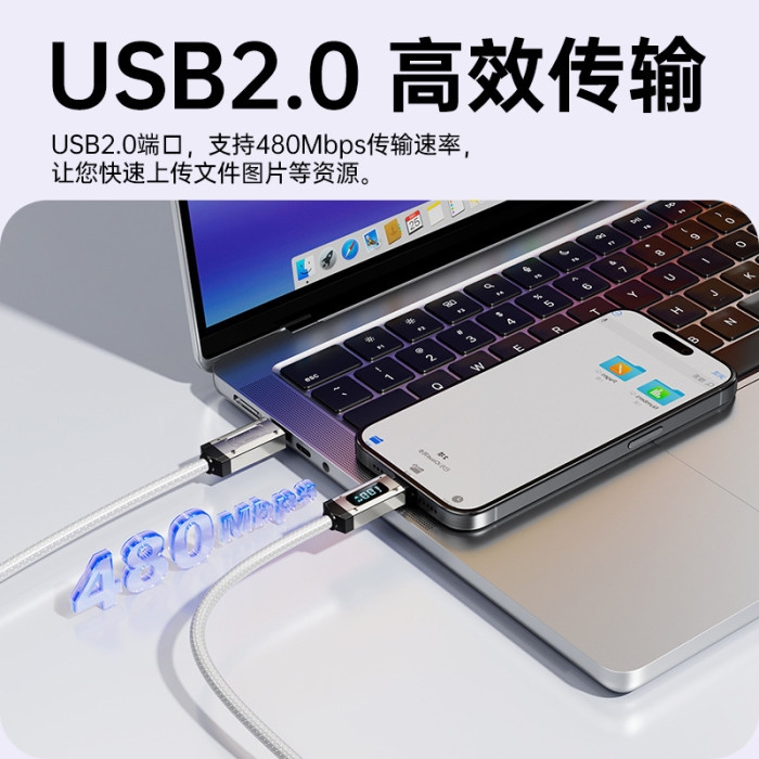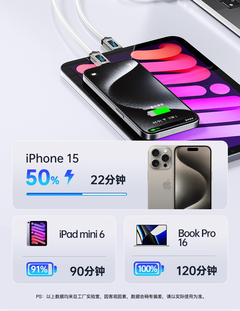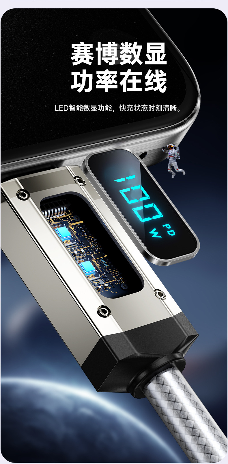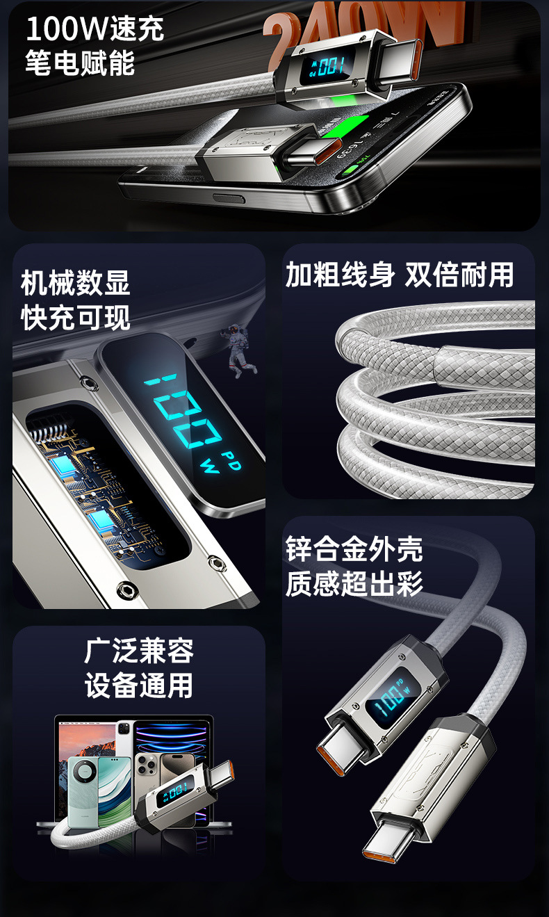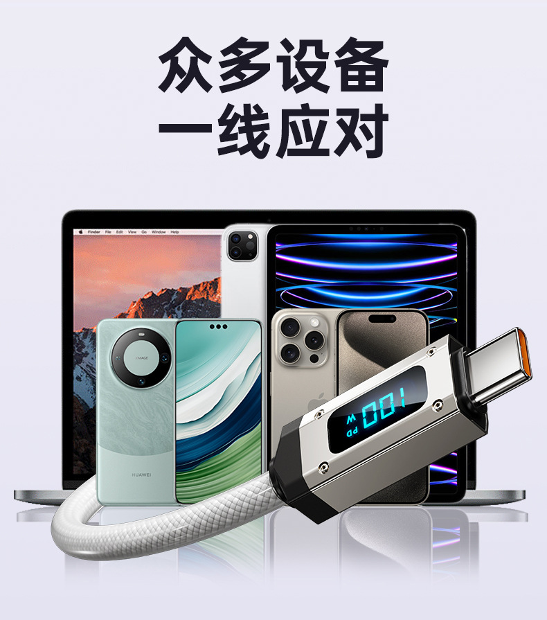 100W超級快充數據線雙TC適用蘋果16華平板安卓充電線器智能數顯PD