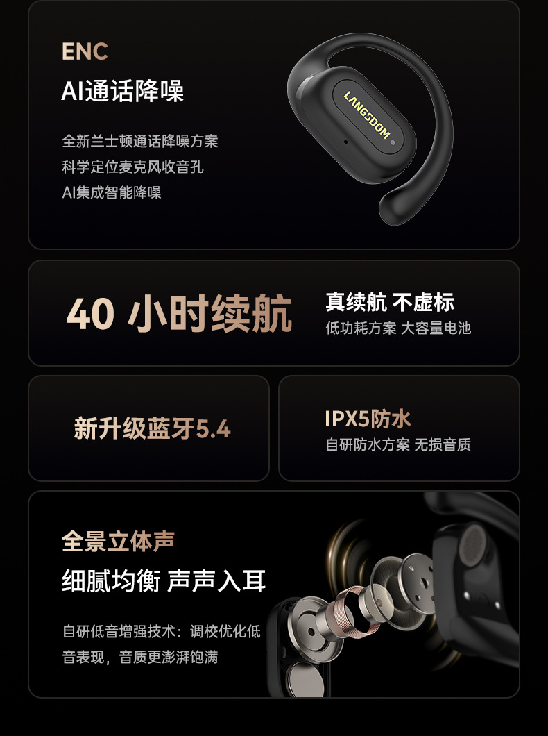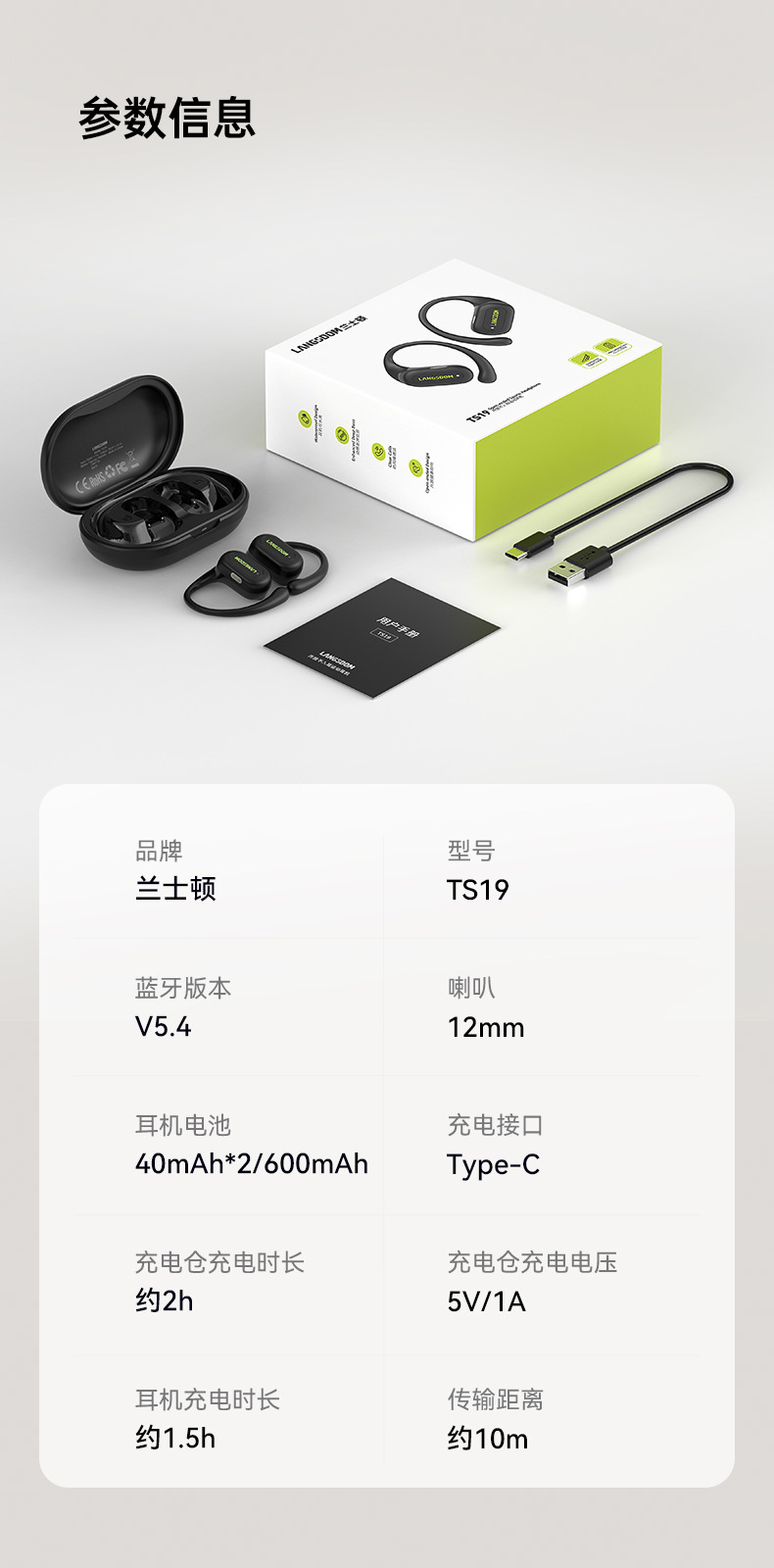 蘭士頓新款TS19藍牙耳機跑步運動防水長續航禮品運動耳機