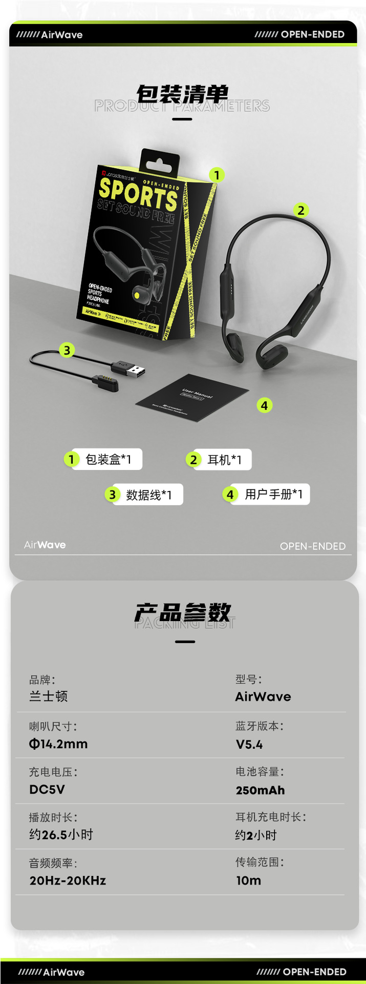 蘭士頓BE10 氣骨傳導藍牙耳機開放式舒適輕盈防水運動藍牙耳機