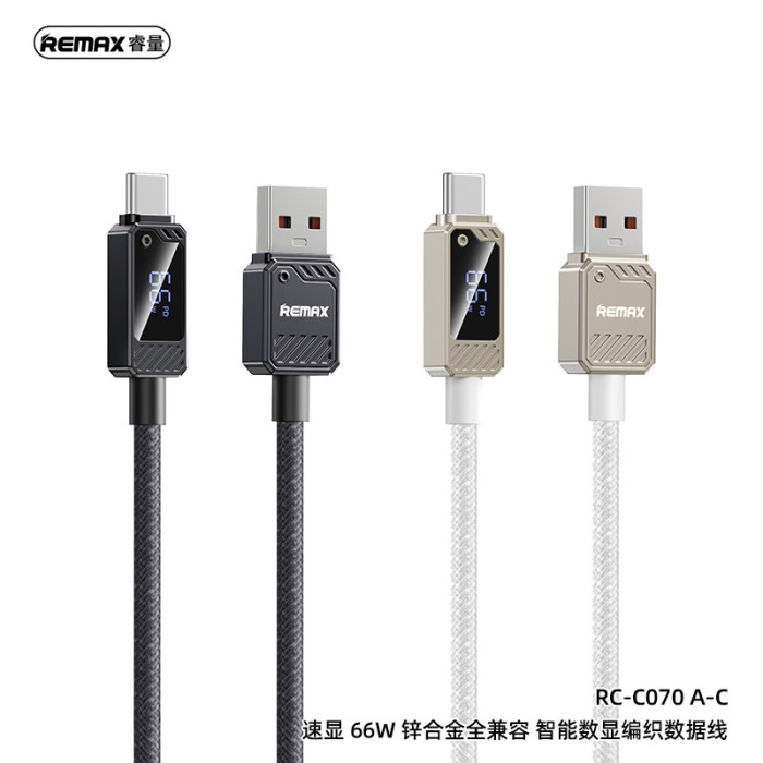 remax 數顯100W快充數據線 Type-C手機快充線 USB數顯手機充電線