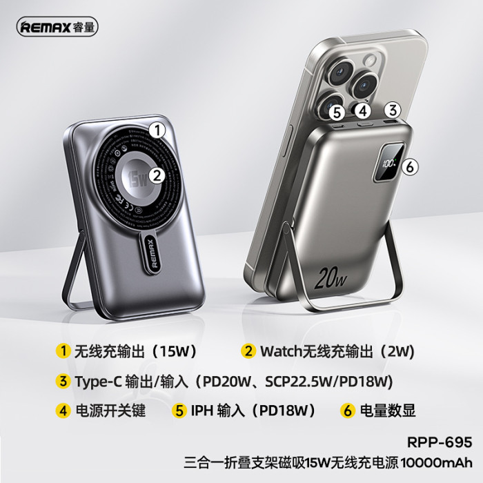 remax 三合一磁吸無線充電行動電源 支架10000安培手機快充充電寶
