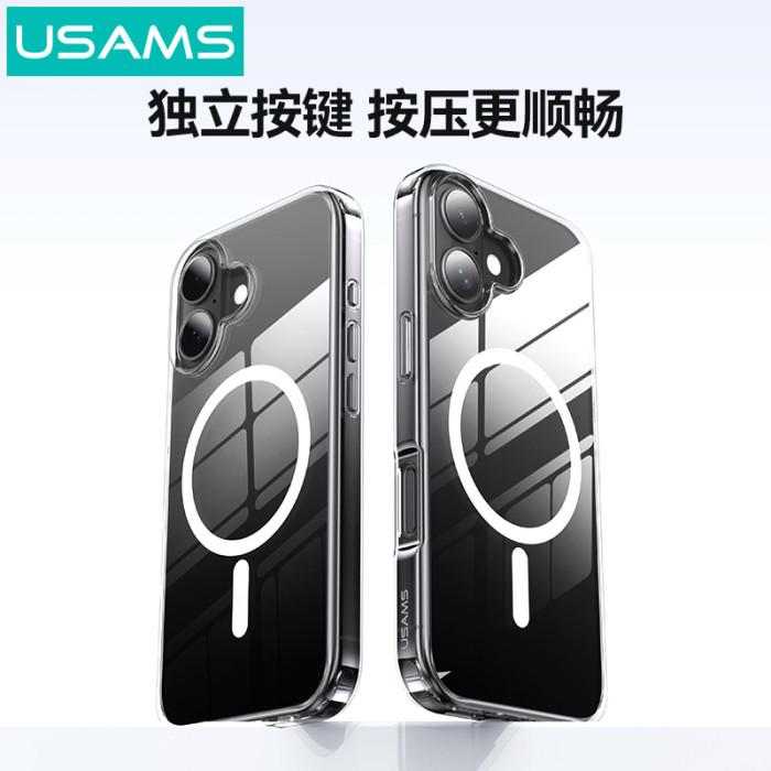USAMS磁吸適用iPhone16promax手機殼蘋果16透明硬殼保護套防摔軟
