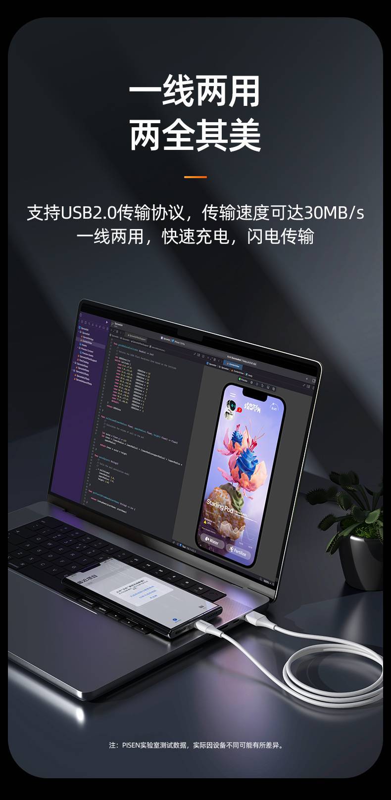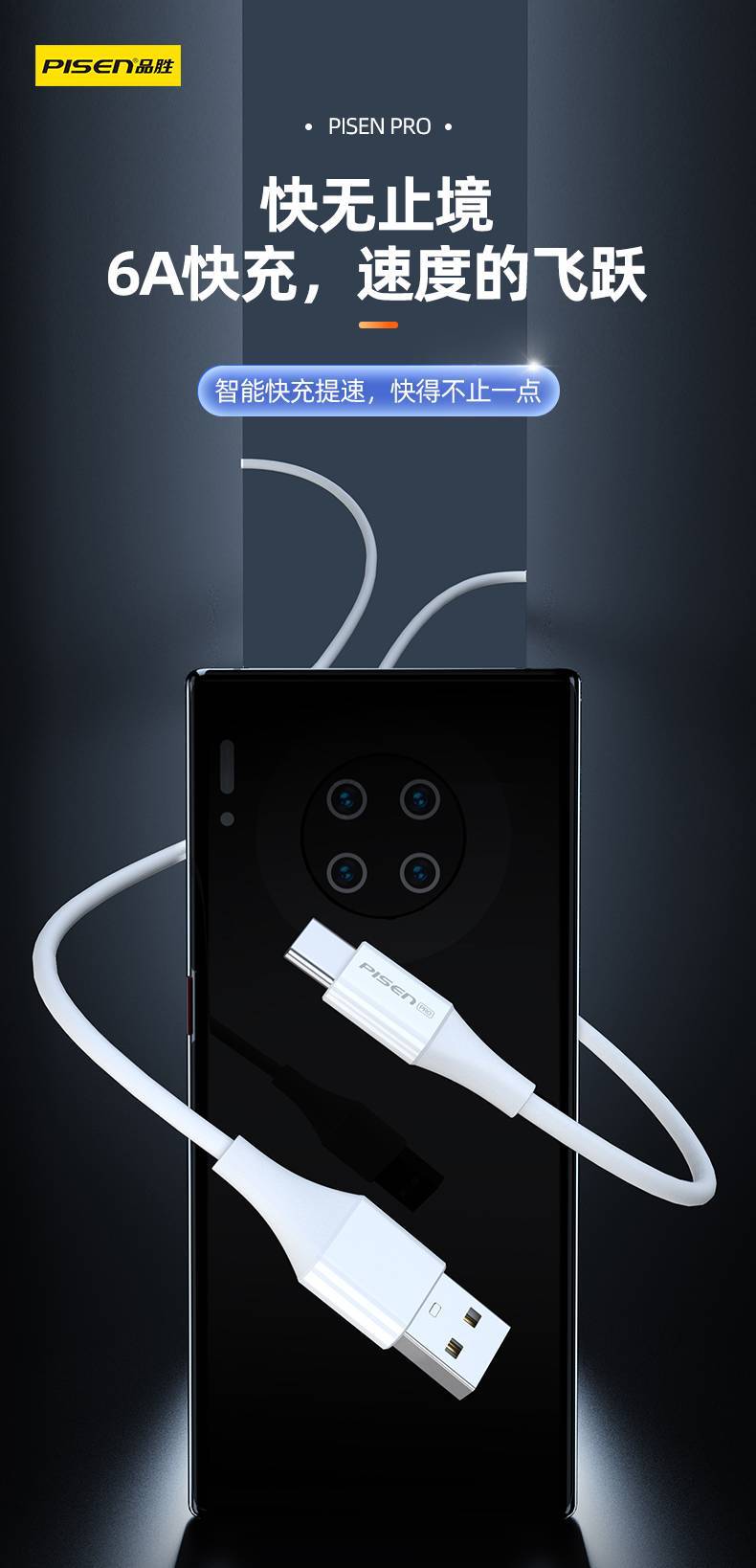 品勝type-c數據線6A多協議快充加長2米適用安卓手機數據充電線