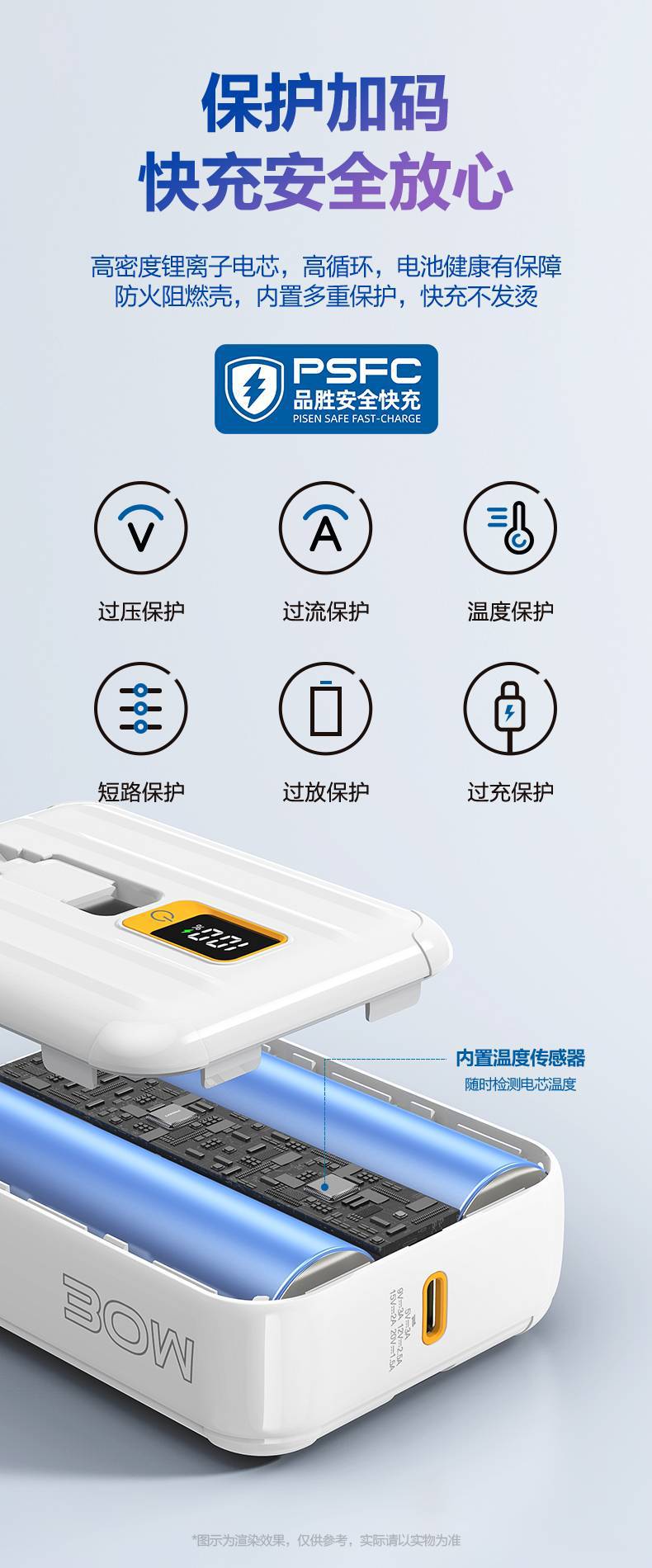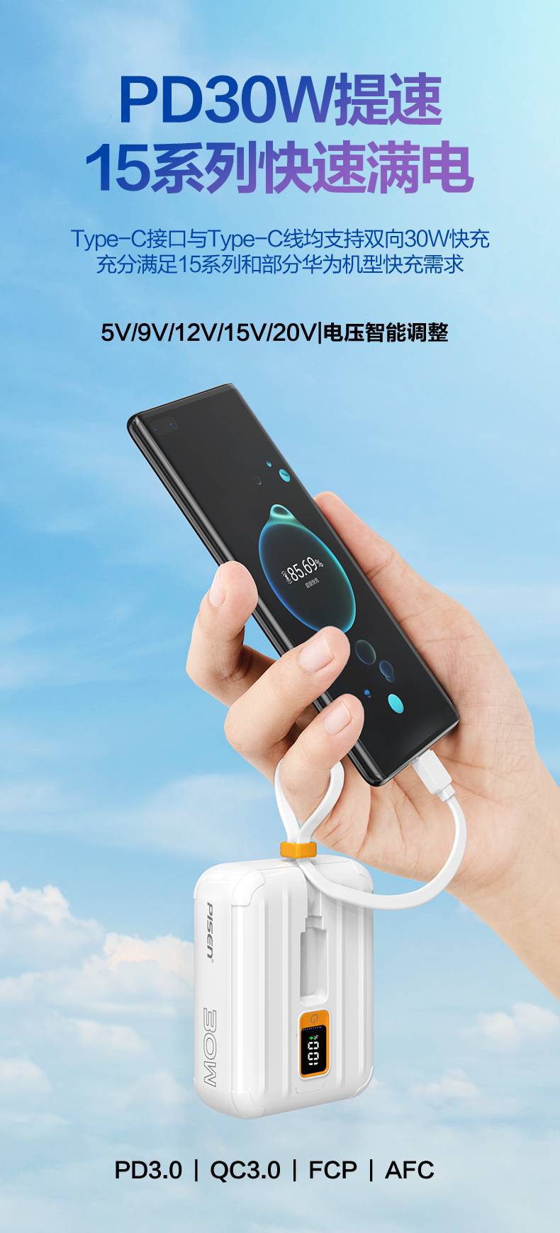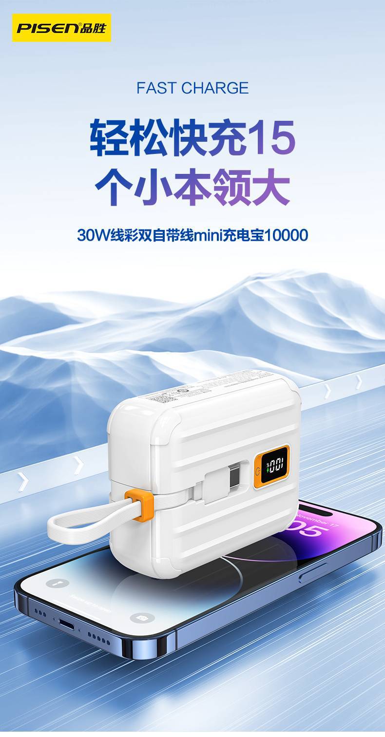 品勝30W自帶線快充充電寶PD27閃充迷你小巧mini行動電源10000安培