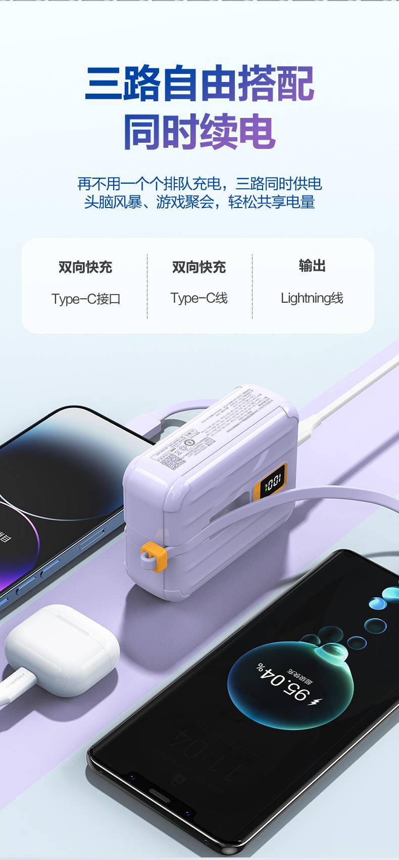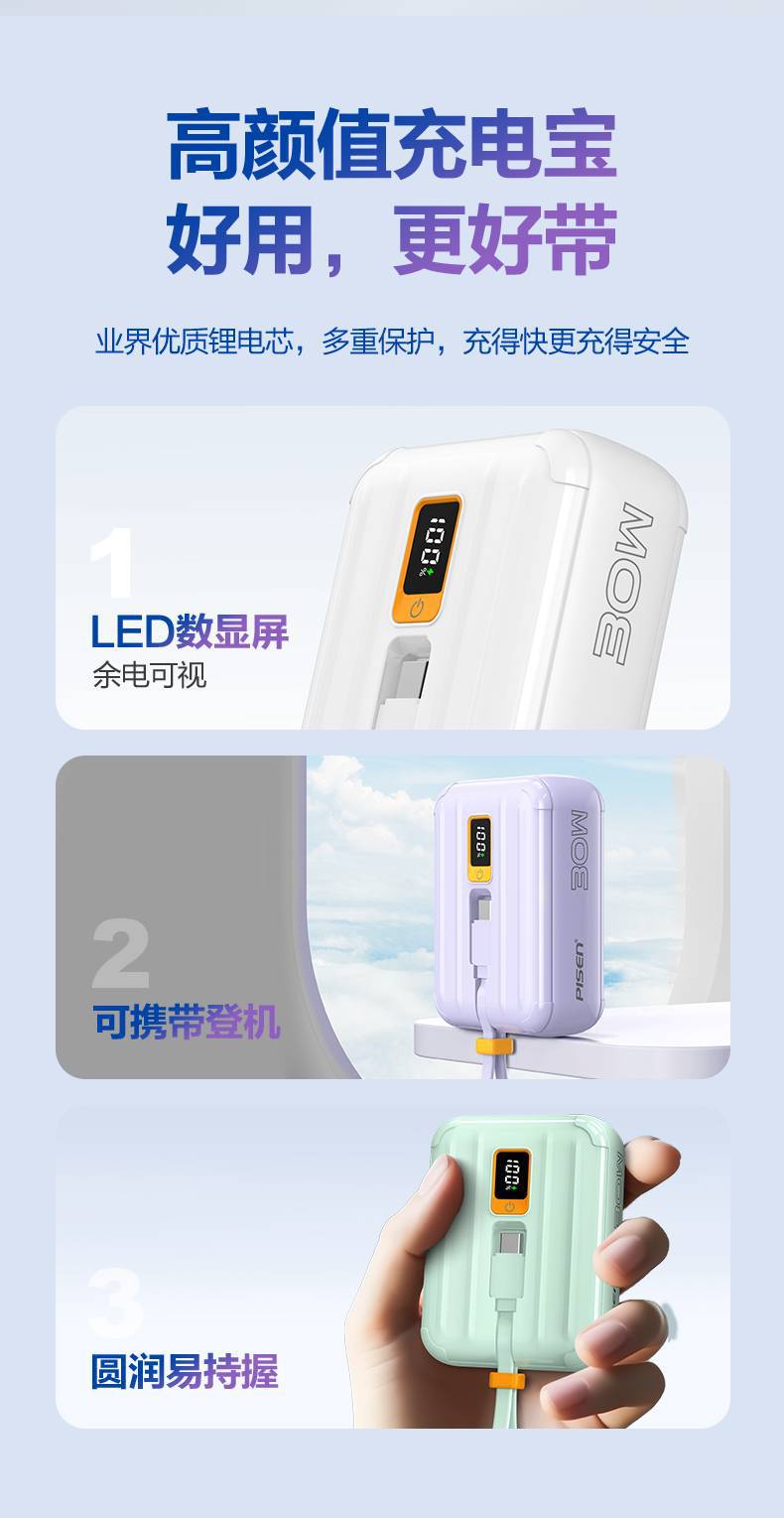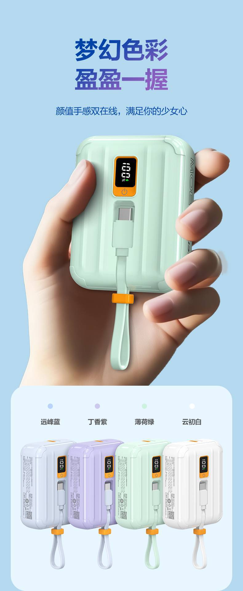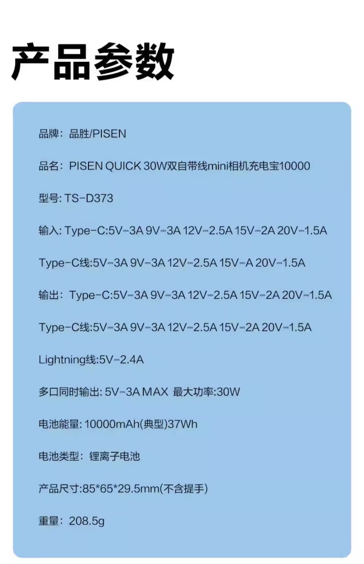 品勝30W自帶線快充充電寶PD27閃充迷你小巧mini行動電源10000安培