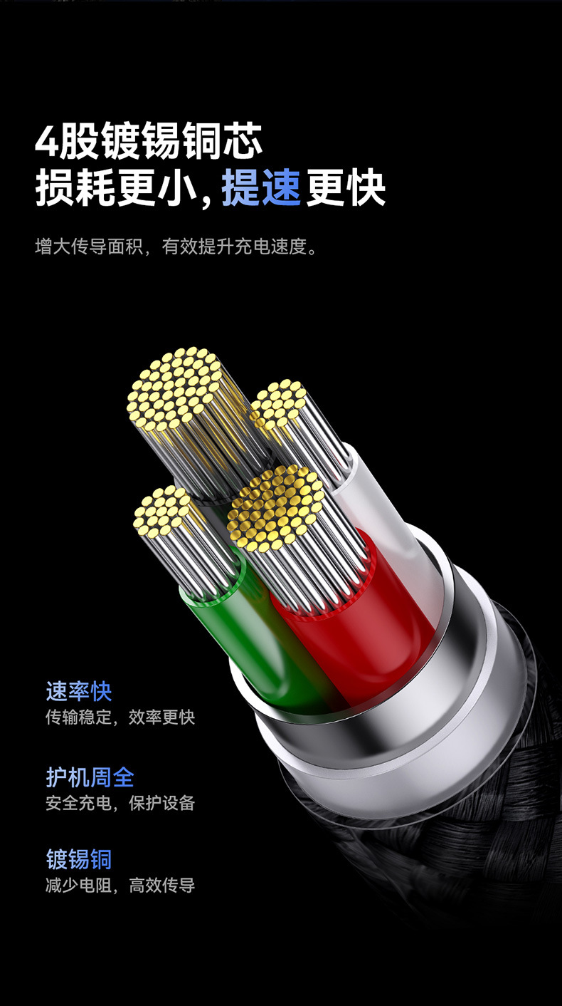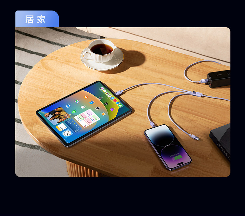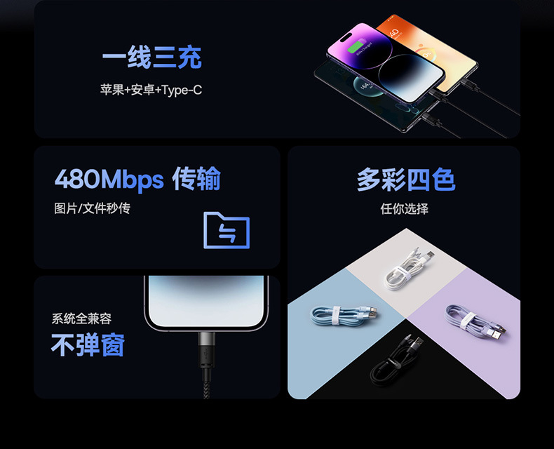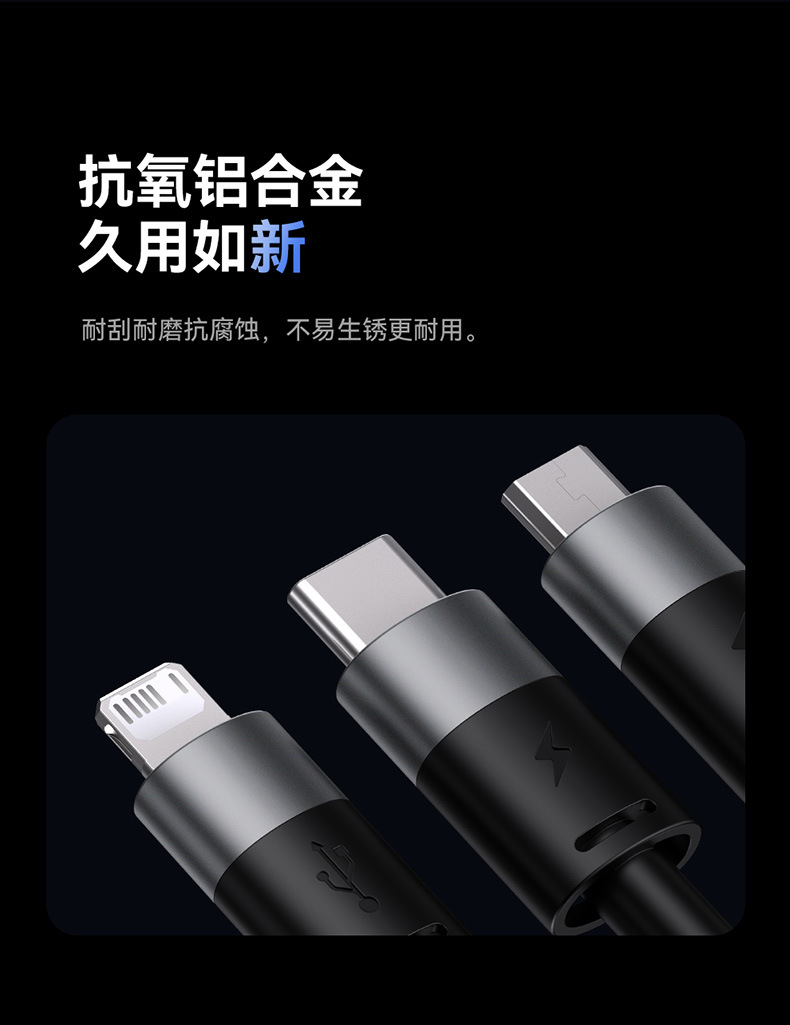 星速三合一數據線快充充電線一拖三多功能三頭type-c快充線