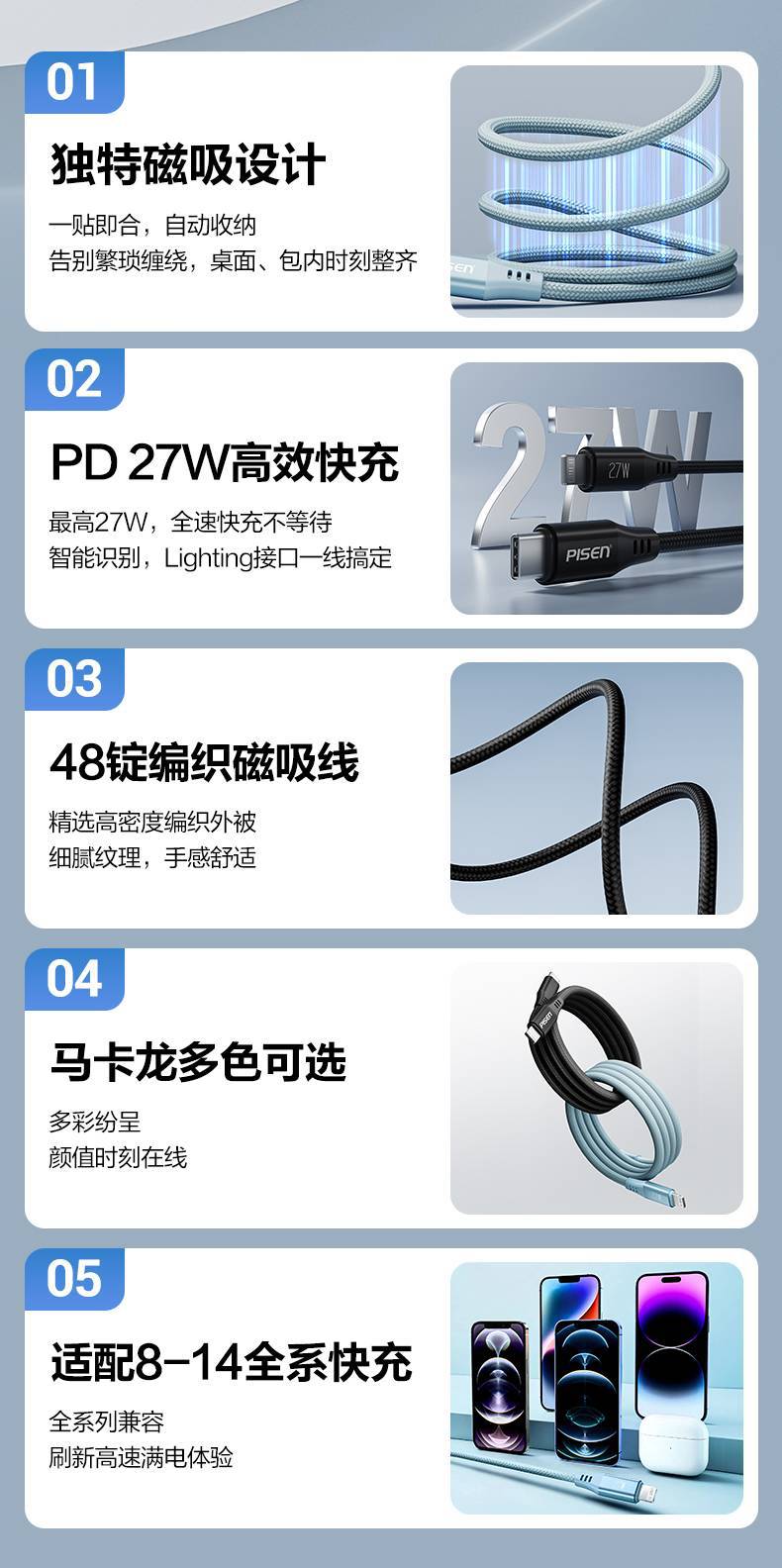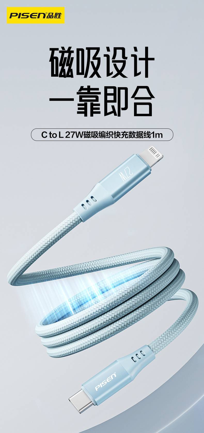 晚藍色編織線【蘋果14-8全系通用】27W快充磁吸自動收納1米