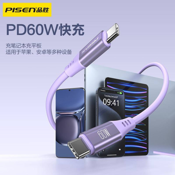 品勝磁吸矽膠數據線適用於蘋果15iphone16充電線雙type快充14pro