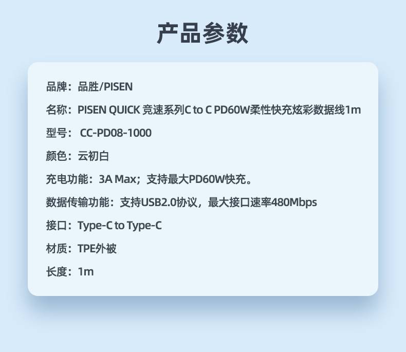 1米 掛卡15數據線*雙Type-C*60W