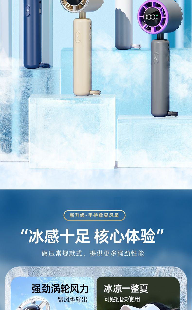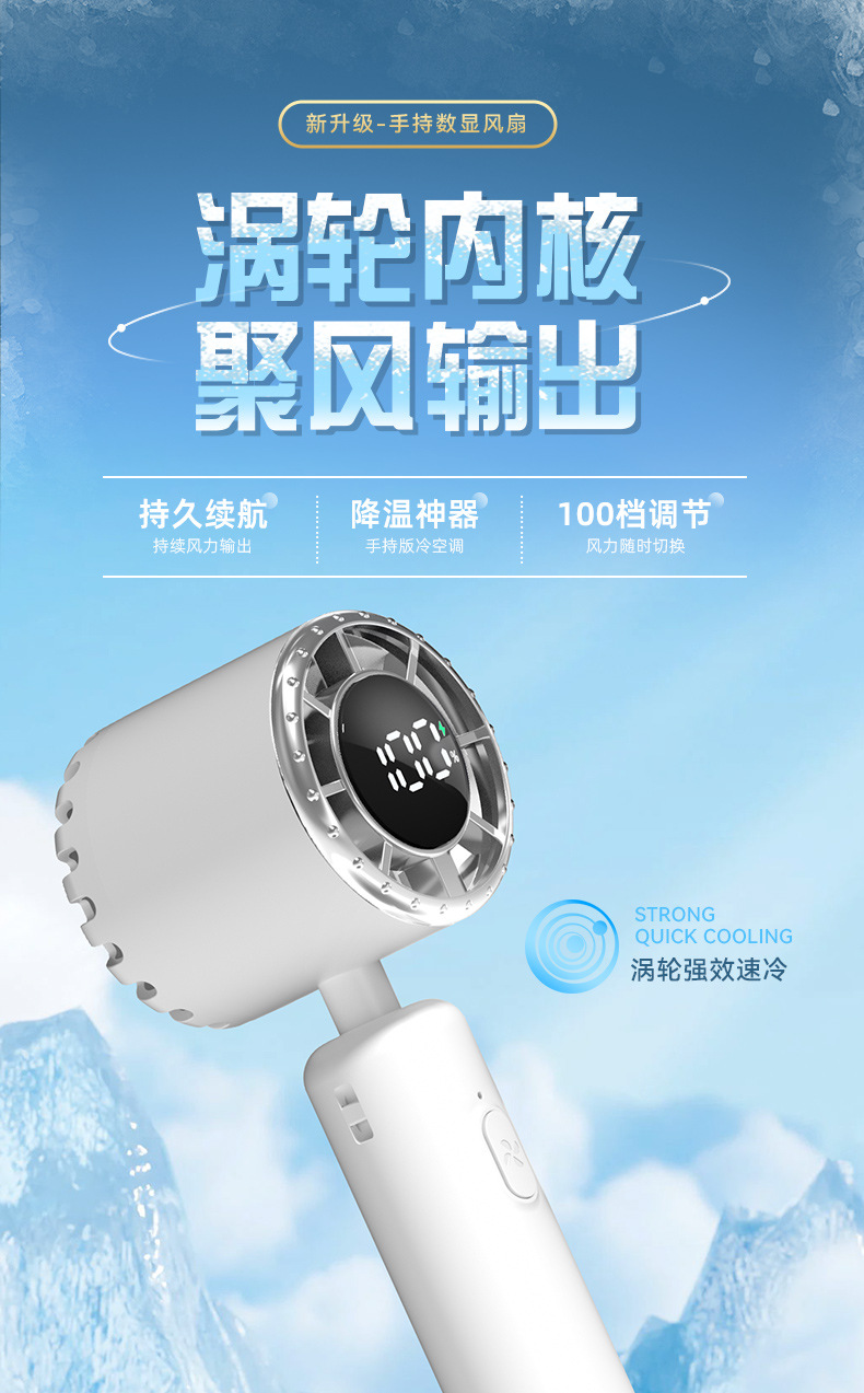 手持風扇新款高速風扇USB渦輪靜音風扇戶外大風力登山扣風扇