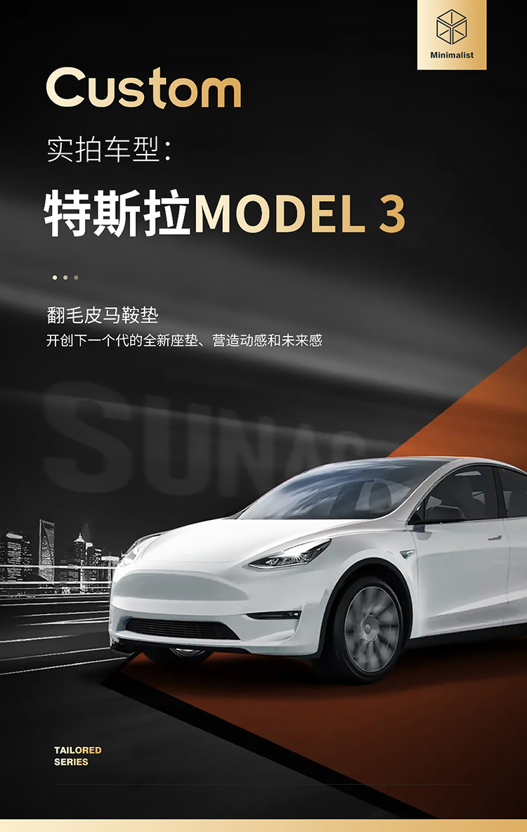 特斯拉Model3專用汽車坐墊三件套馬鞍墊翻毛皮四季通用汽車座套