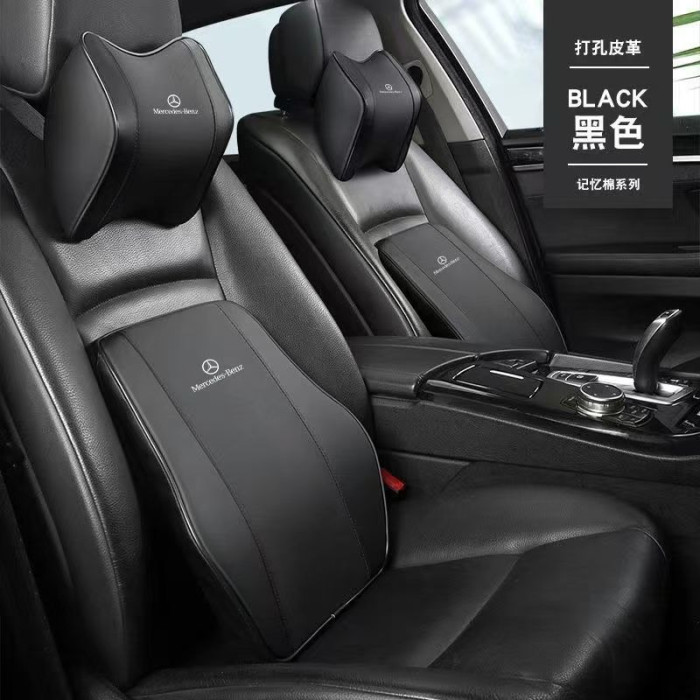汽車頭枕腰靠墊護頸枕記憶棉打孔皮革奔馳GLB/GLC/E級C級套裝靠枕