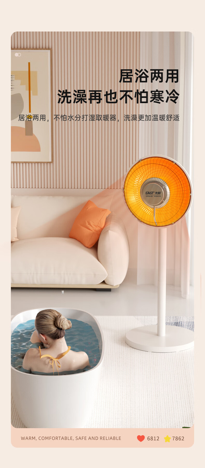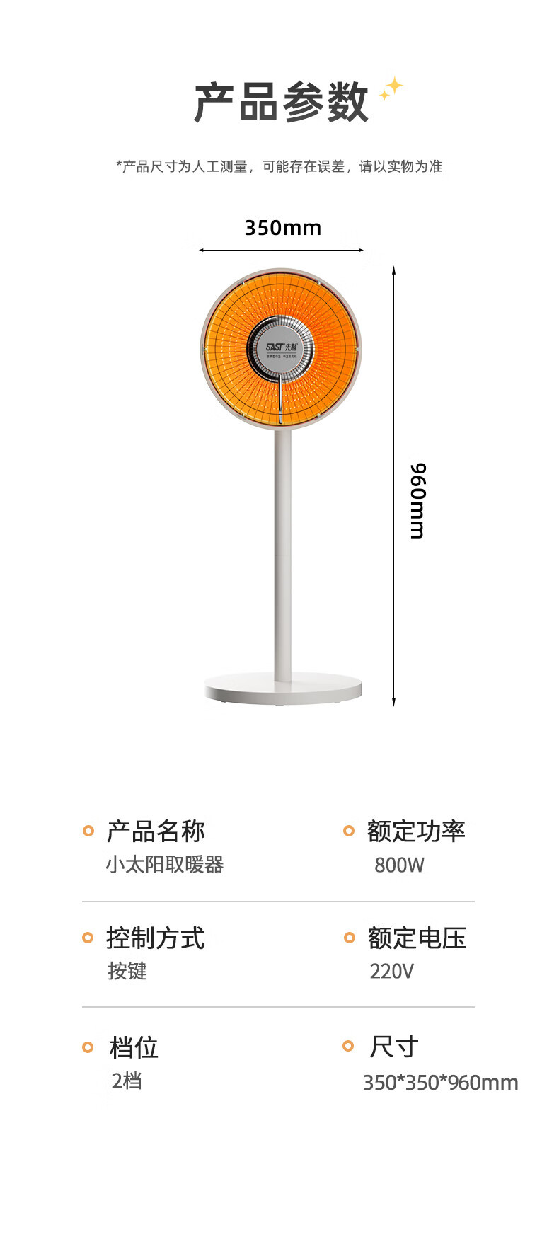 先科(SAST)取暖器小太陽電暖器電熱扇電暖爐俯仰搖頭多檔調節