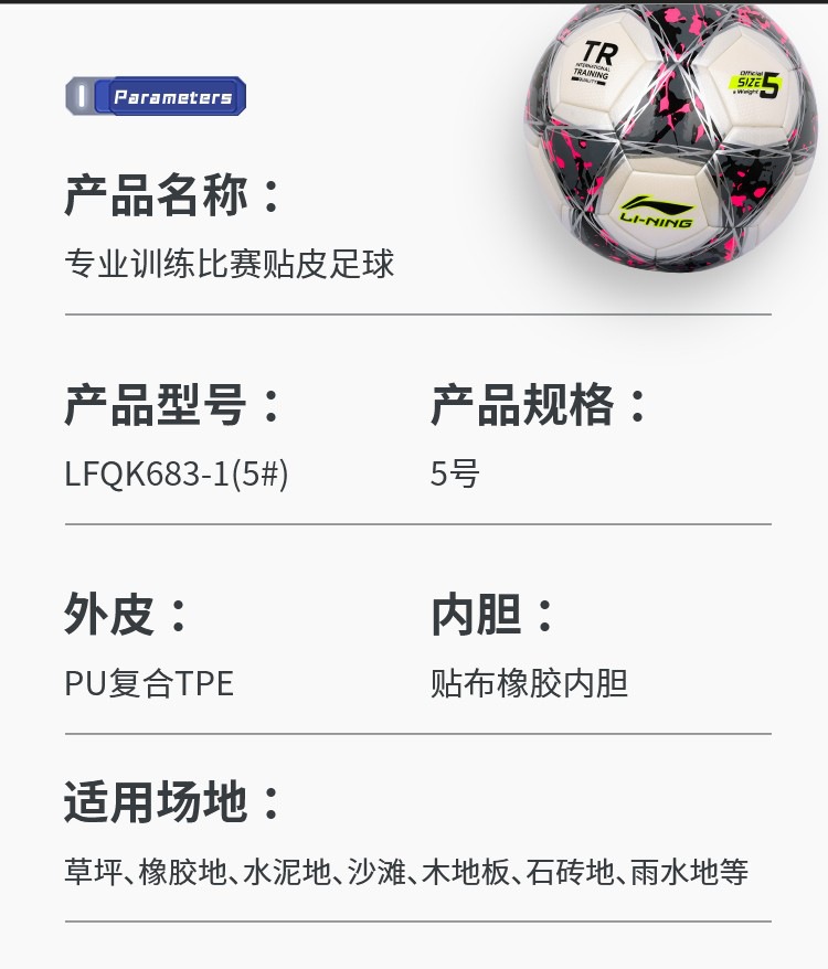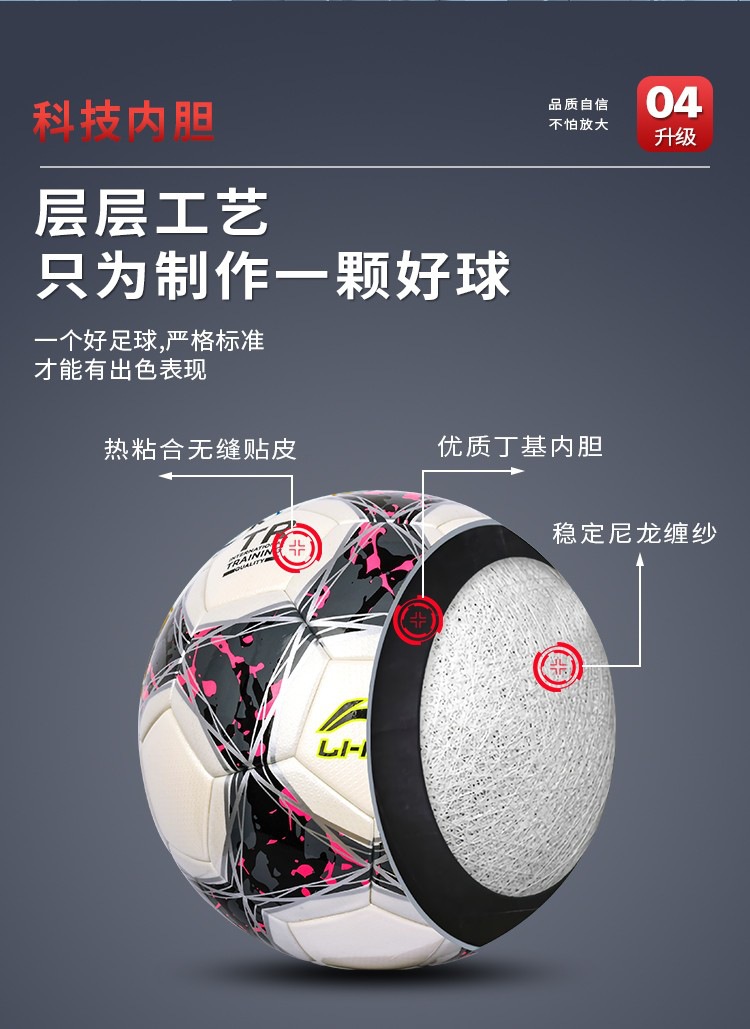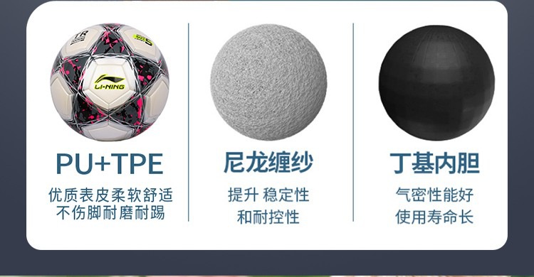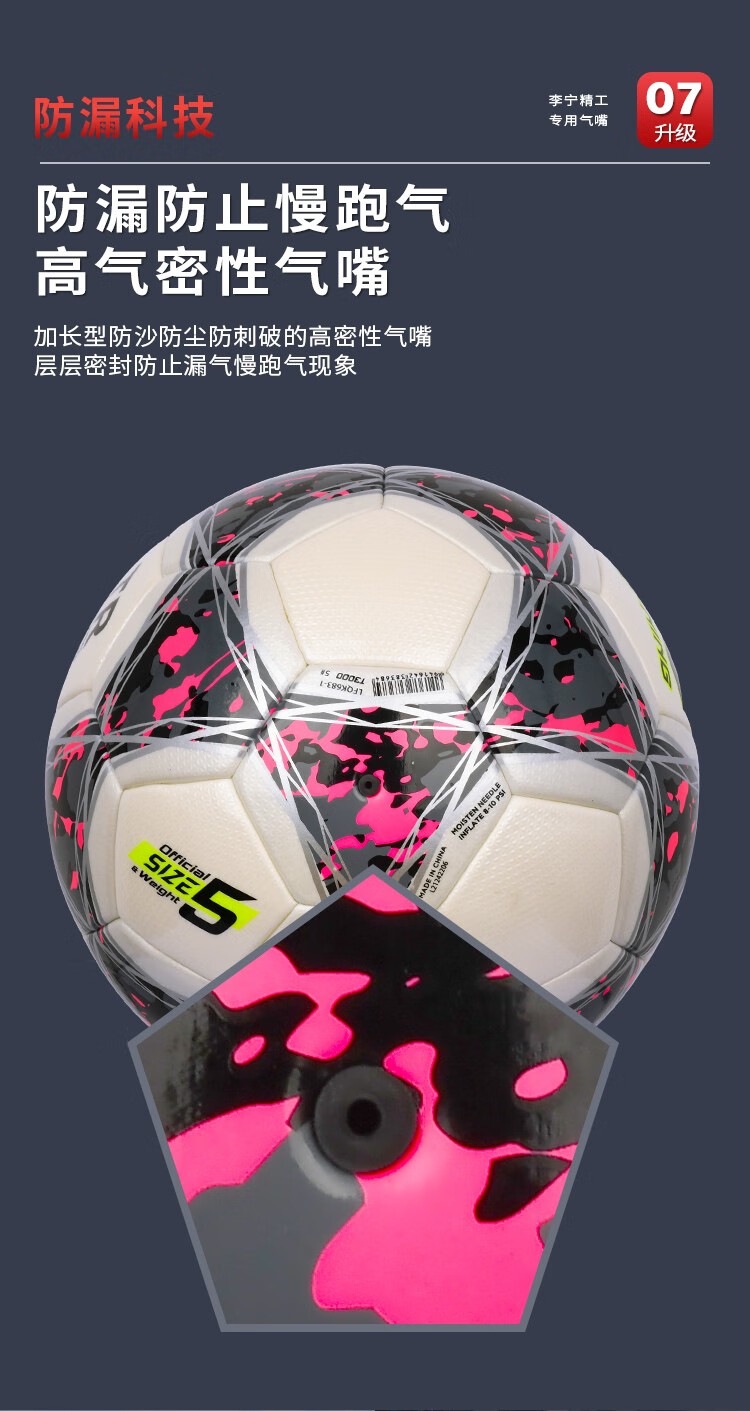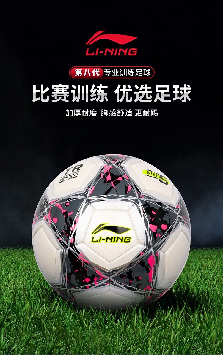李甯(LI-NING)足球5號球考試訓練耐磨防滑成人球白紫粉LFQK683