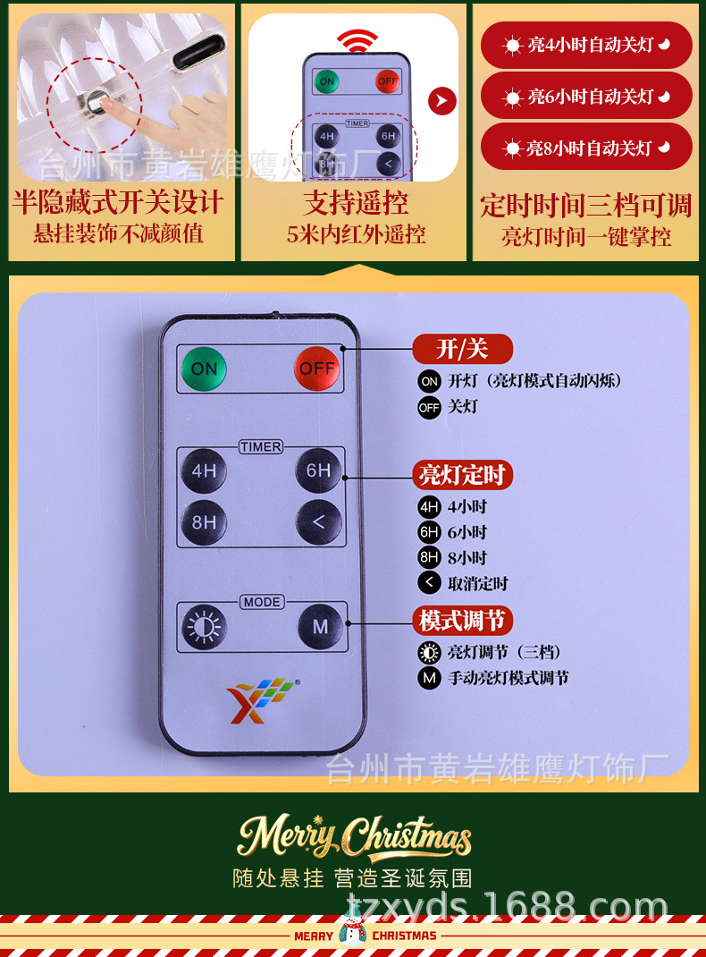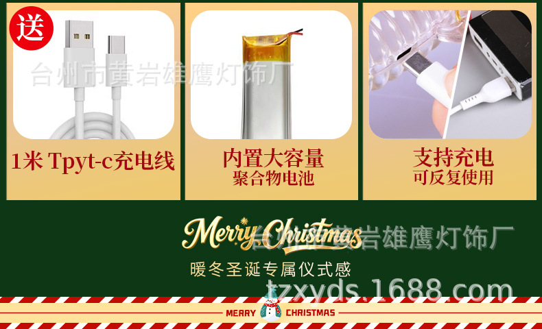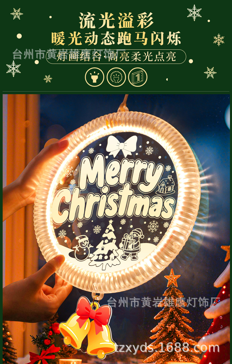 燈光顔色 紅色聖誕快樂跑馬轉運【可充電定時遙控款】