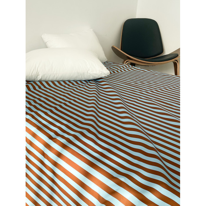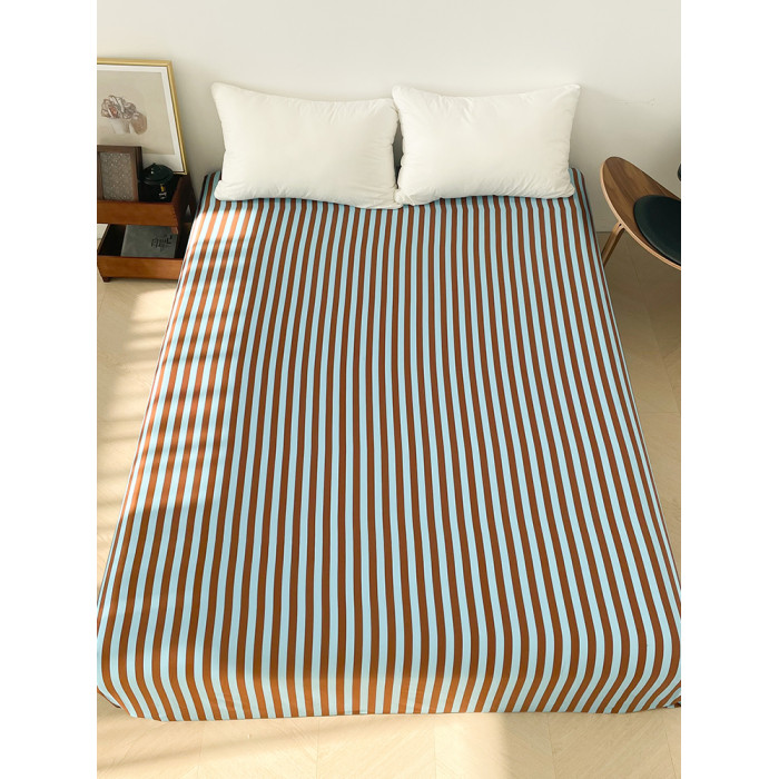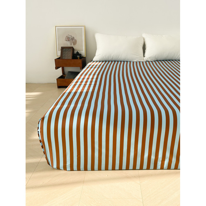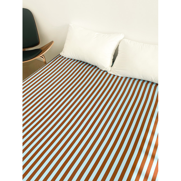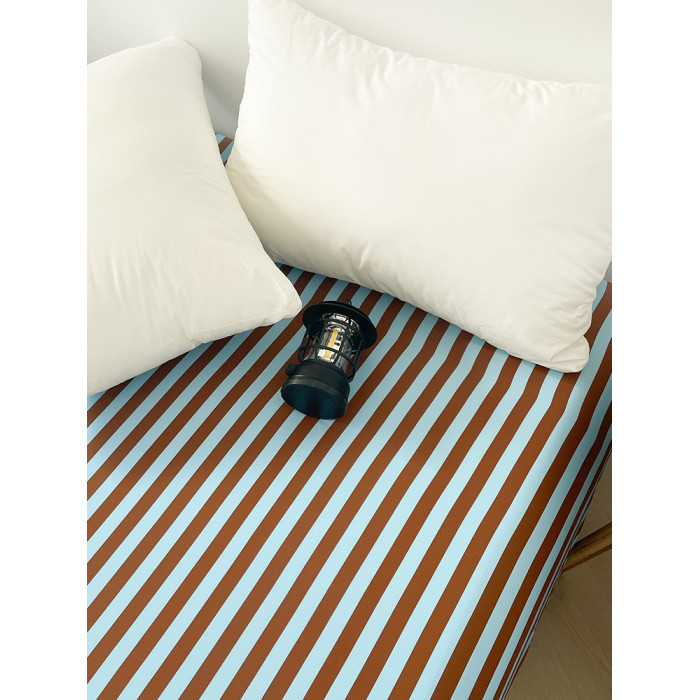 冰椰美式 藍咖色條紋全棉床單床笠中古風深色系100棉單件被單親膚