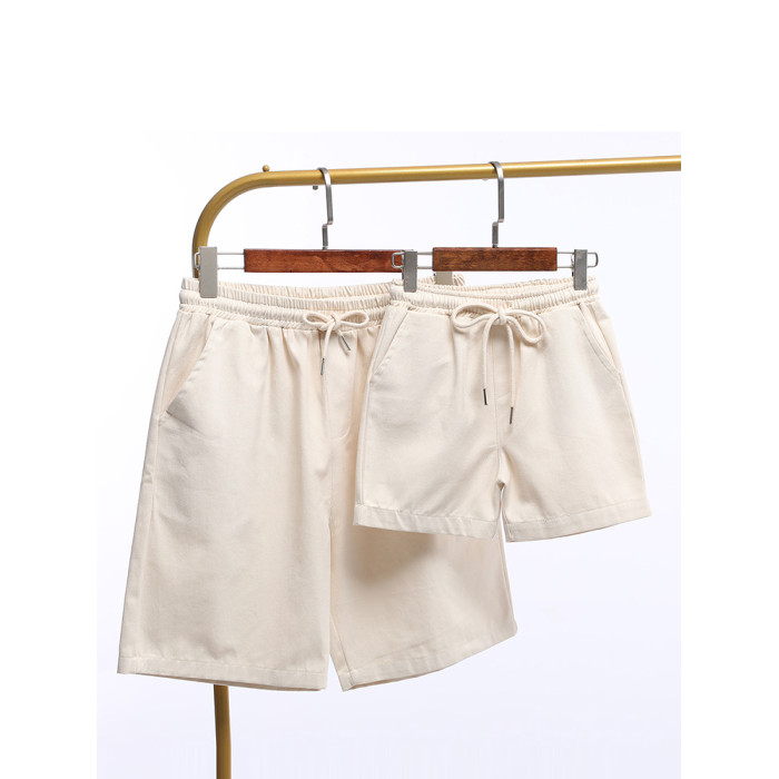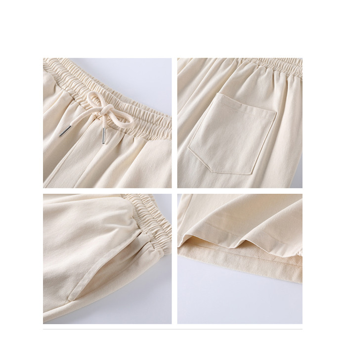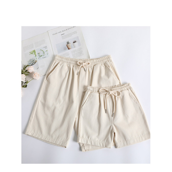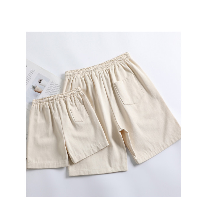 百搭親子裝夏裝短褲純色米色一家三口四口母子母女裝休閒褲男女寶