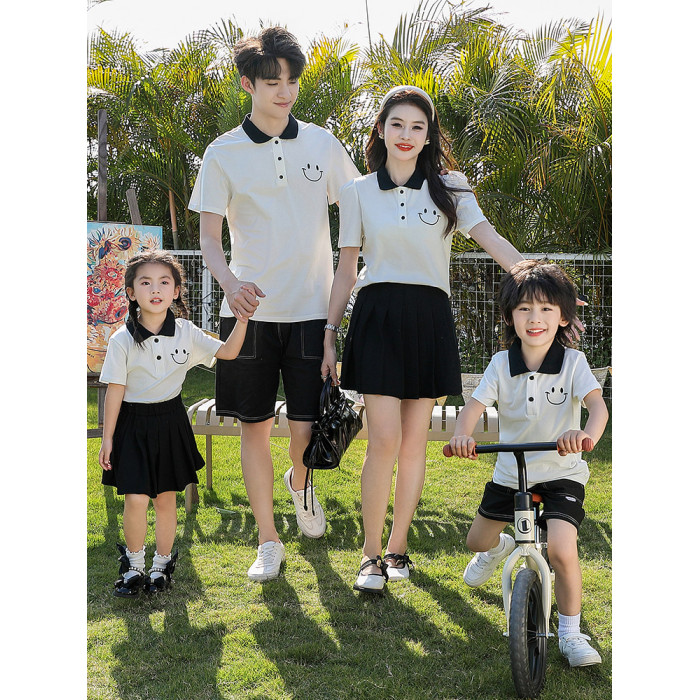 親子裝一家三口夏裝2025新款活動團體母女短袖polo幼兒園夏季套裝