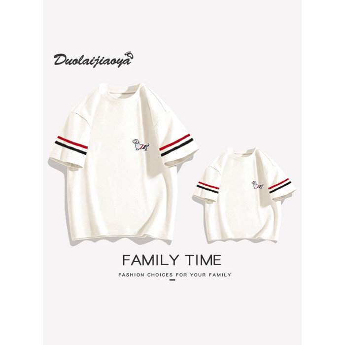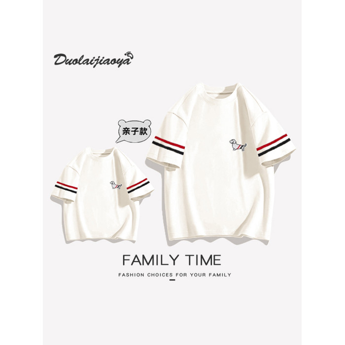 高級親子裝夏季2025新款卡通小狗一家三口母子母女家庭裝短袖t恤