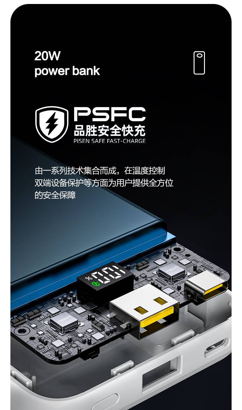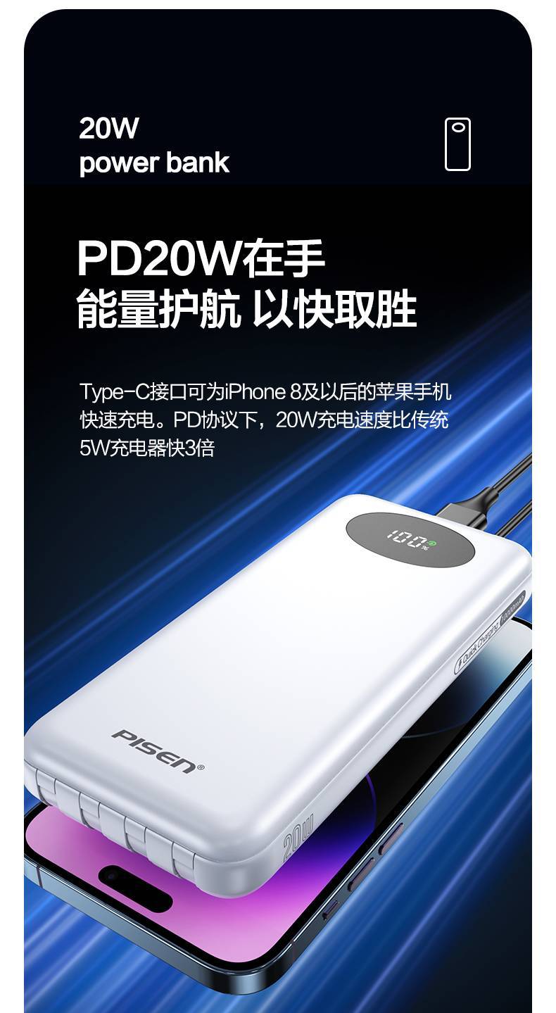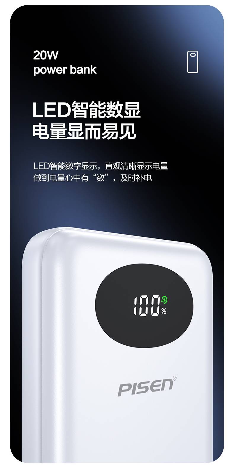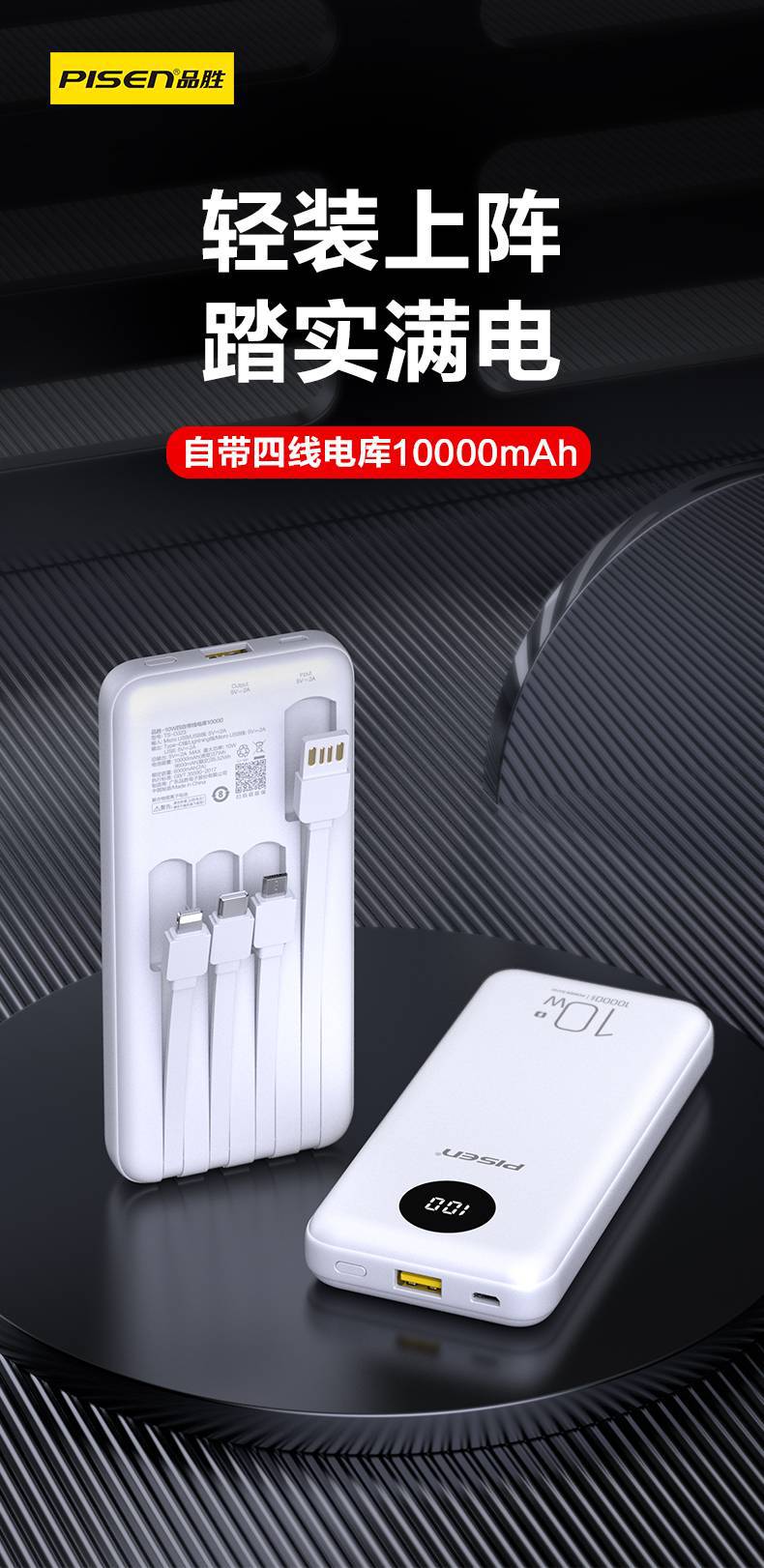 電源容量 | 2萬毫安-20W白色*自帶4線充電寶【TS-D344】 |