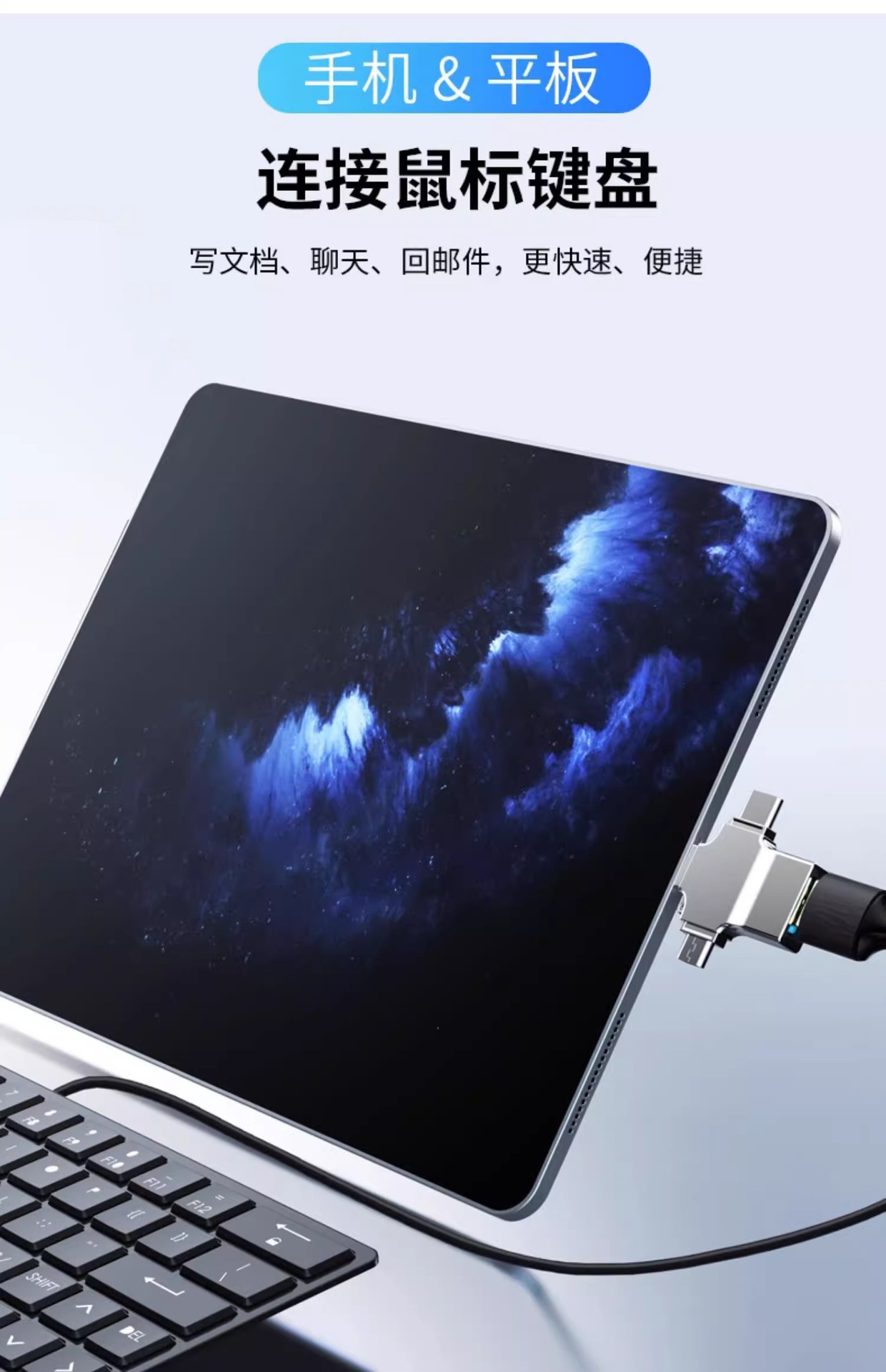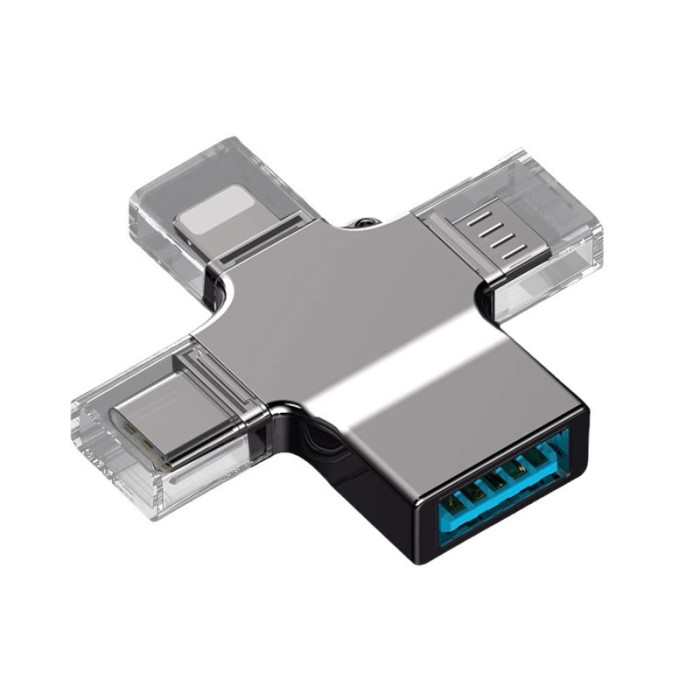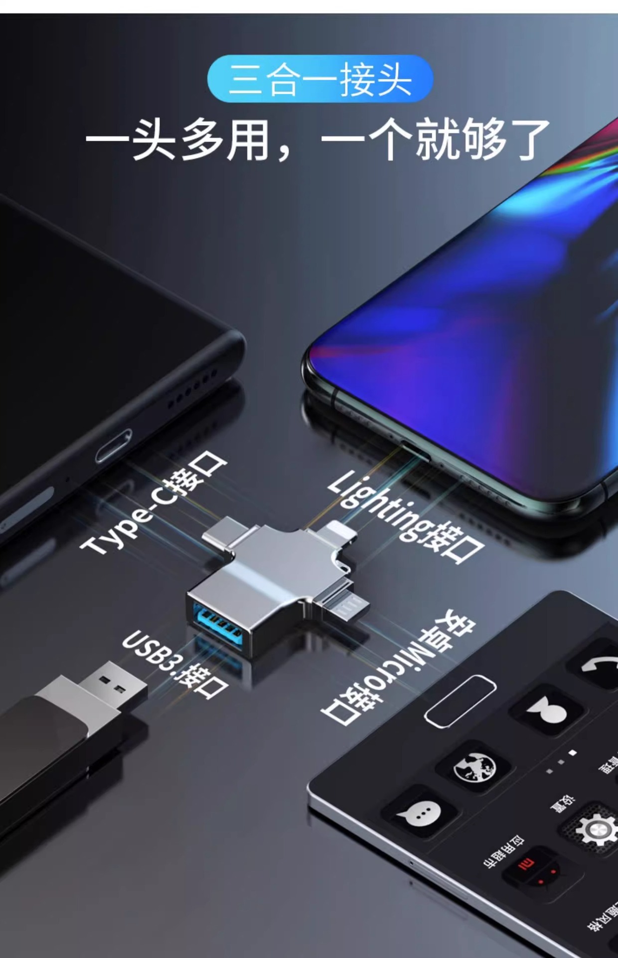 適用蘋果/安卓/Type-C【流光銀】三合一OTG轉接頭