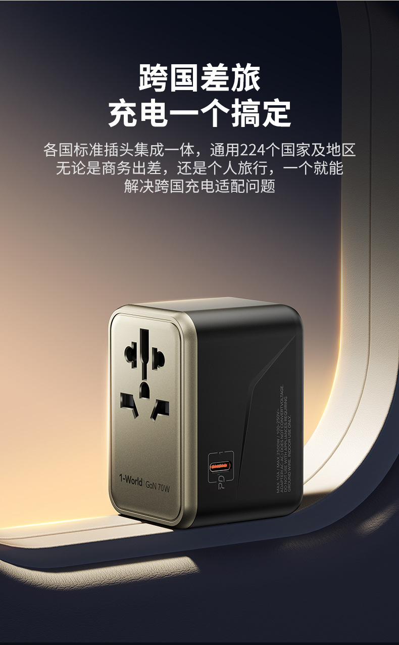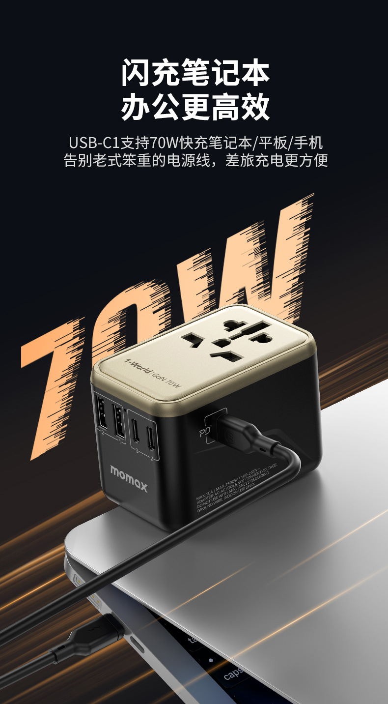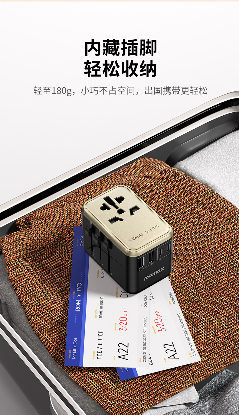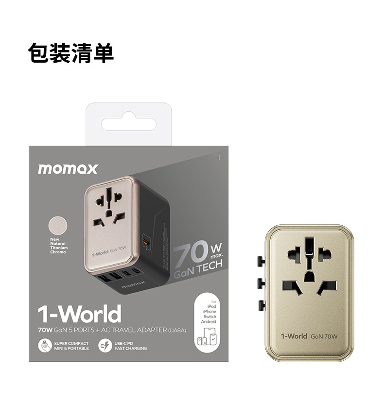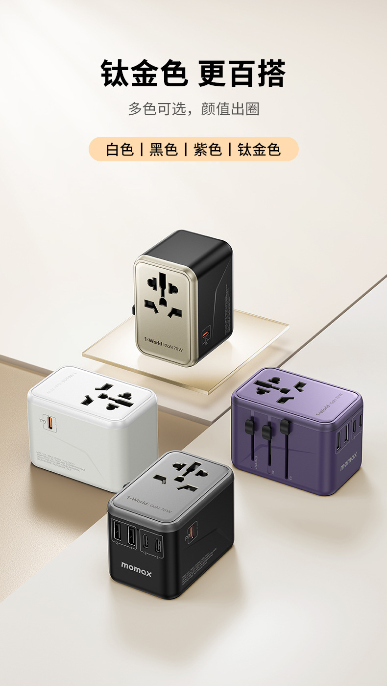 新品MOMAX摩米士70W氮化鎵轉換插頭全球通用出國旅行日本英國德歐
