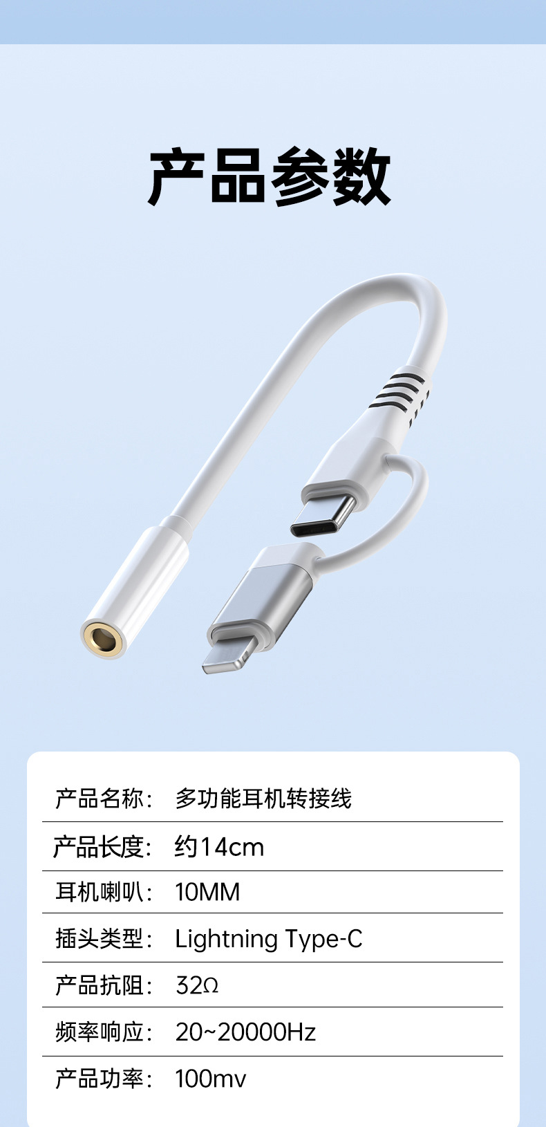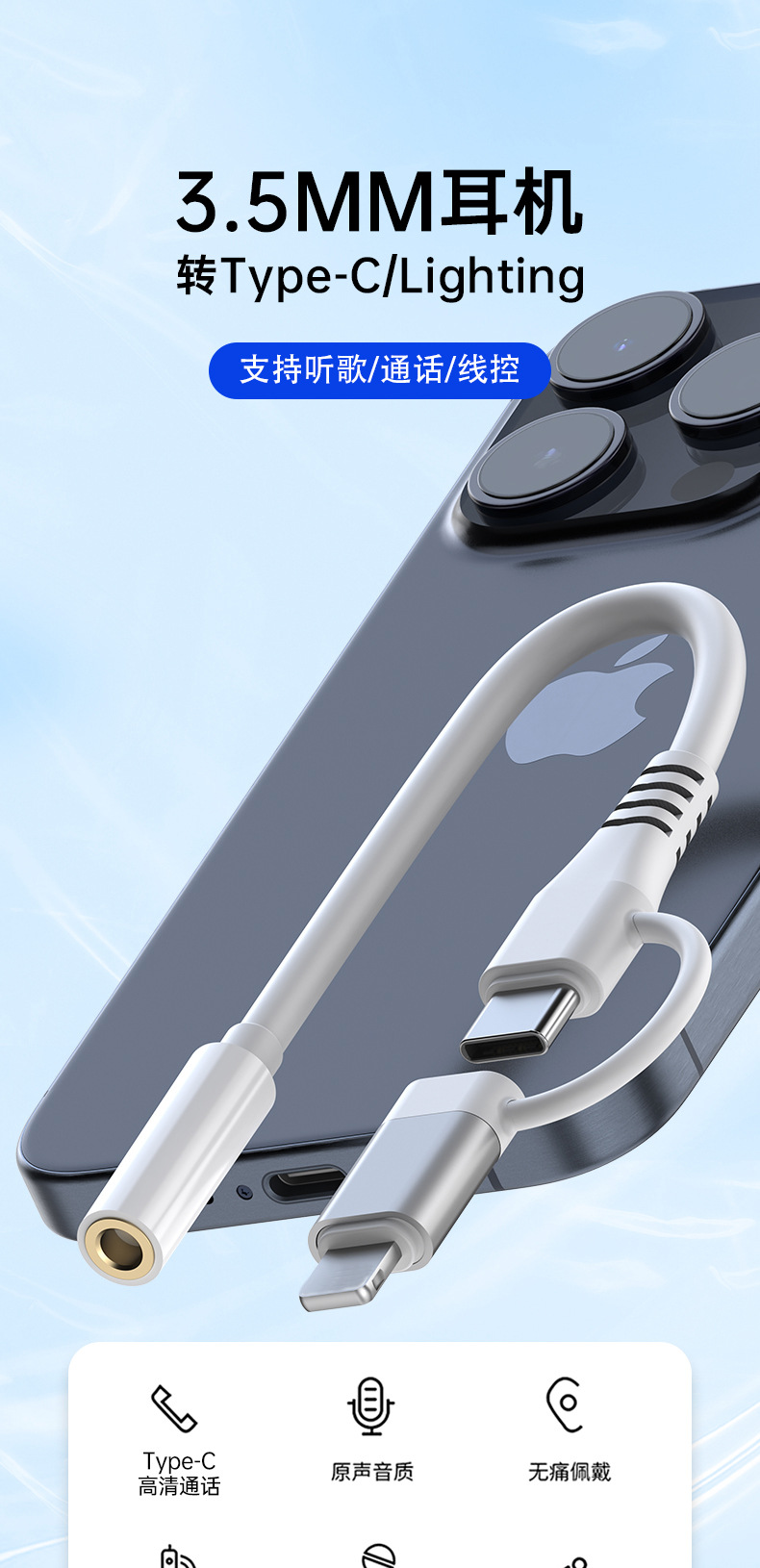 二合一耳機轉接線lightning轉3.5mm適用蘋果16華爲轉換器TC音頻線