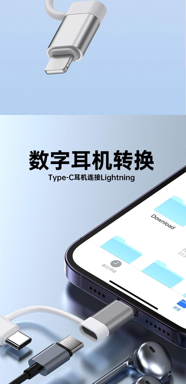 嬭白【TC+Lighting轉3.5MM】二合一耳機轉接線