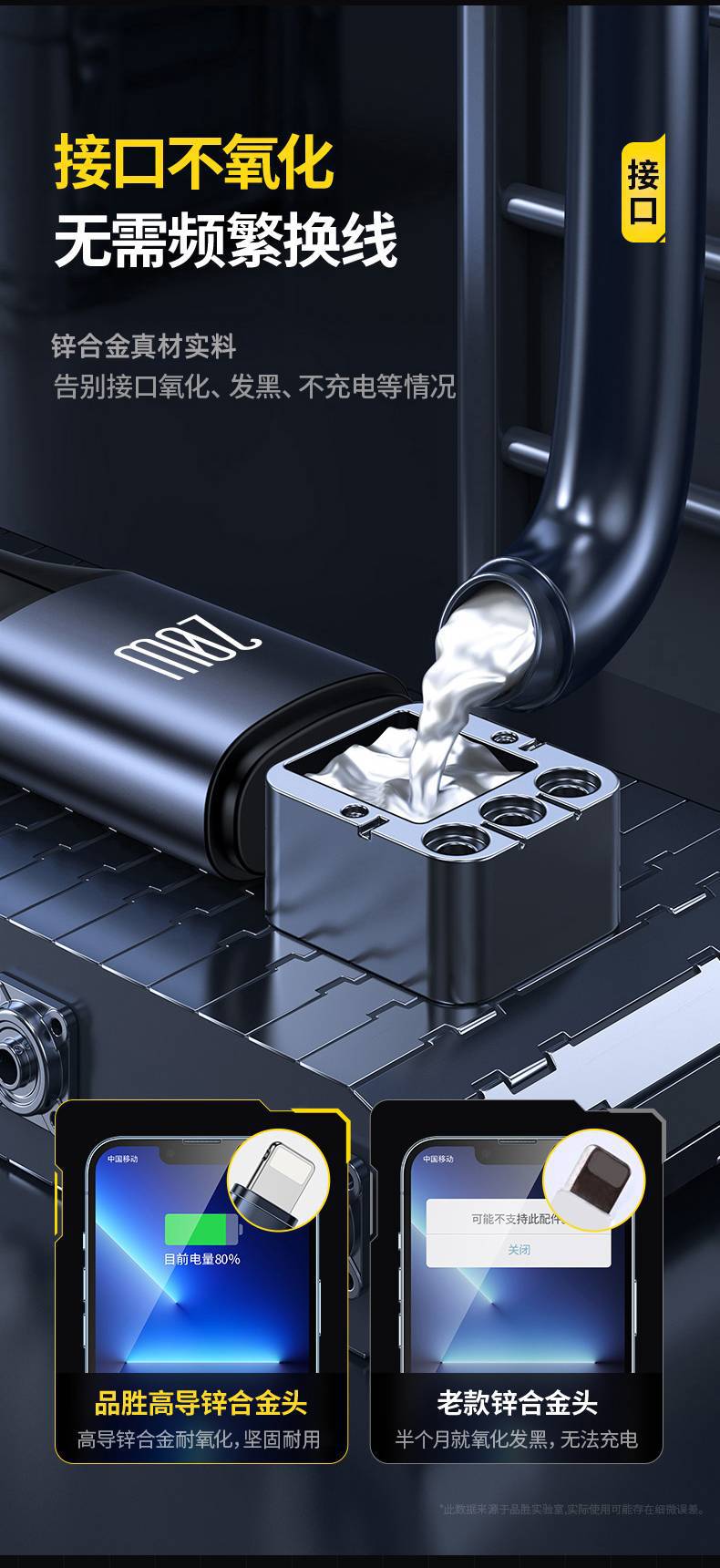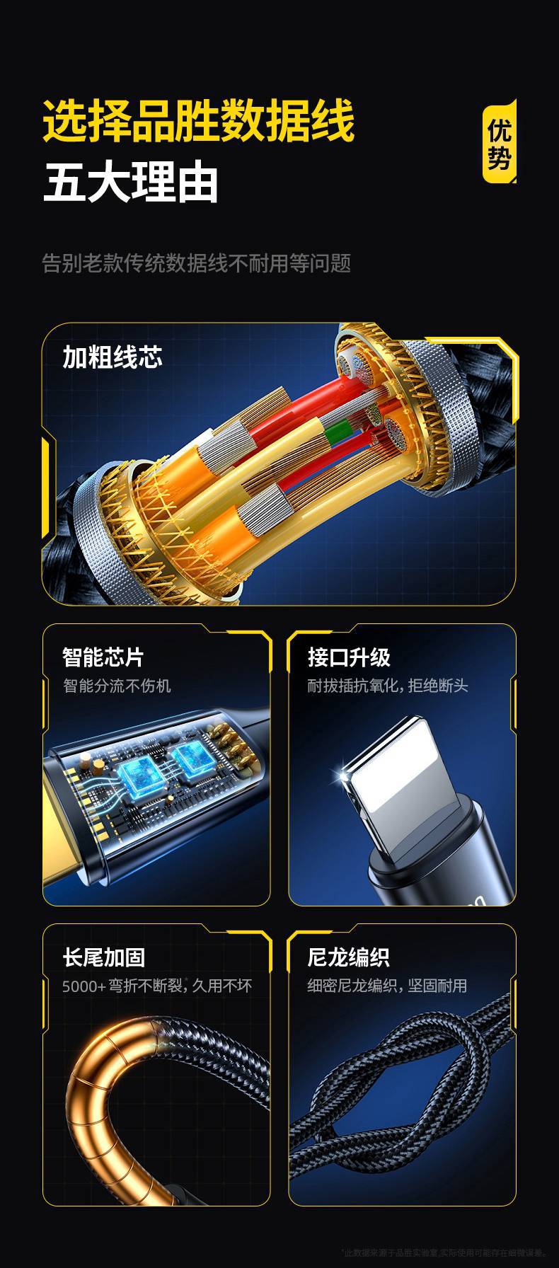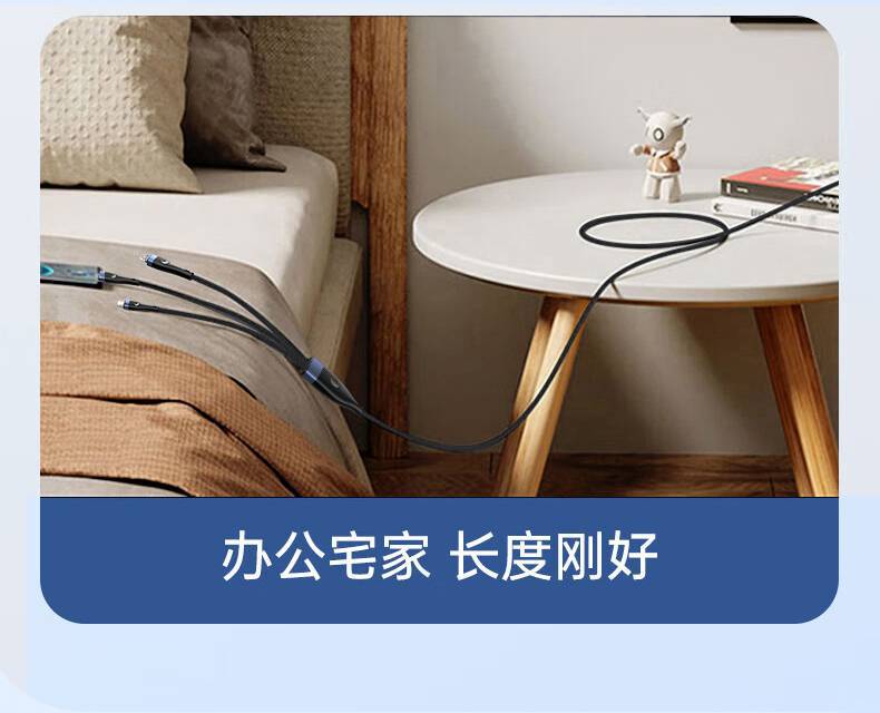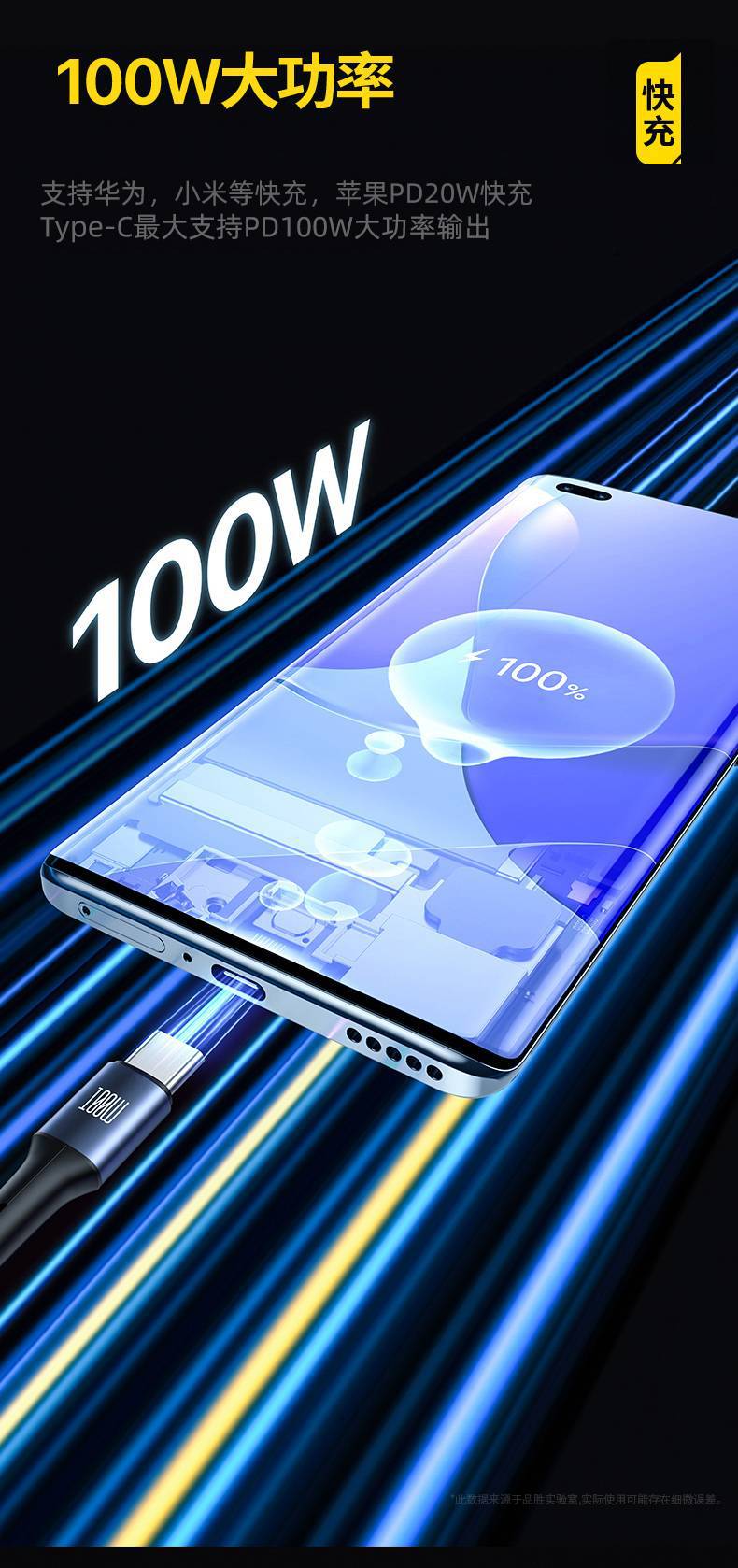 品勝type-c口一拖三數據線快充三合一100W適用蘋果華爲編織線