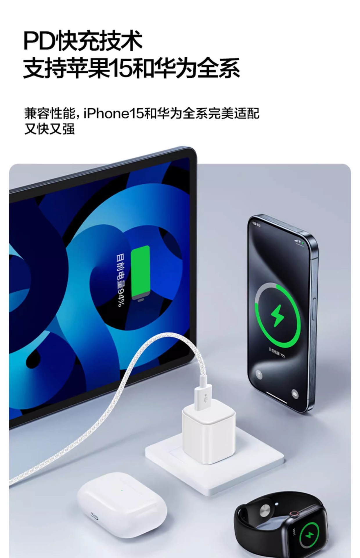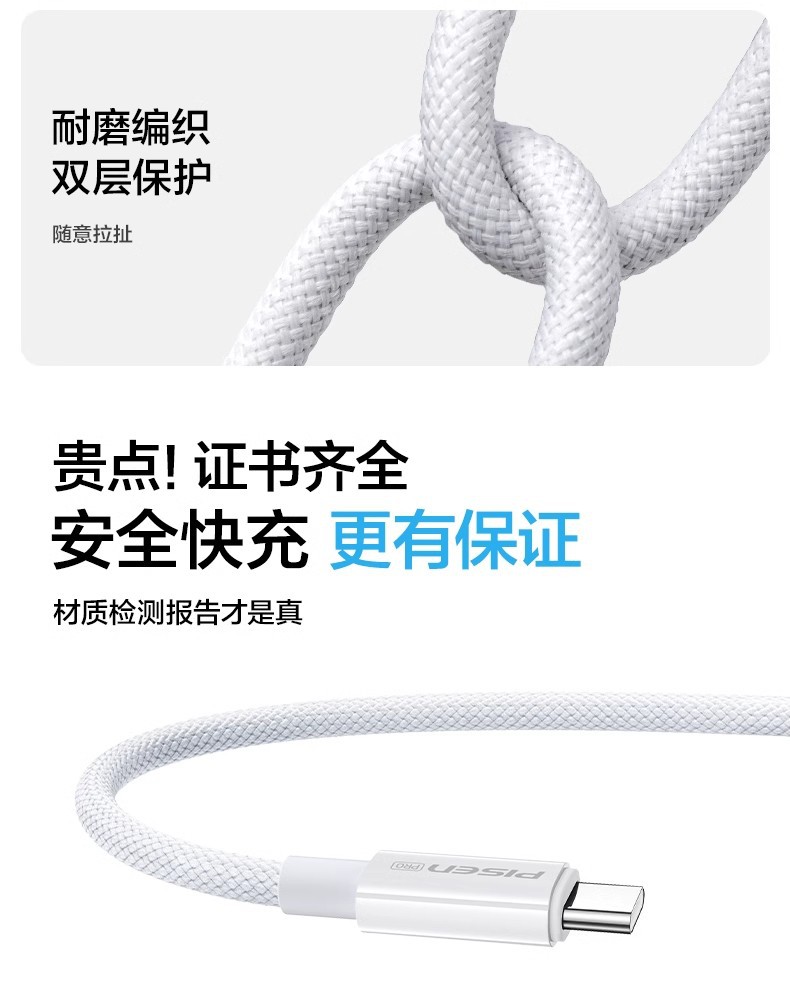 品勝100W快充Type-c數據線適用蘋果15iPhone華爲16p車機互聯充電