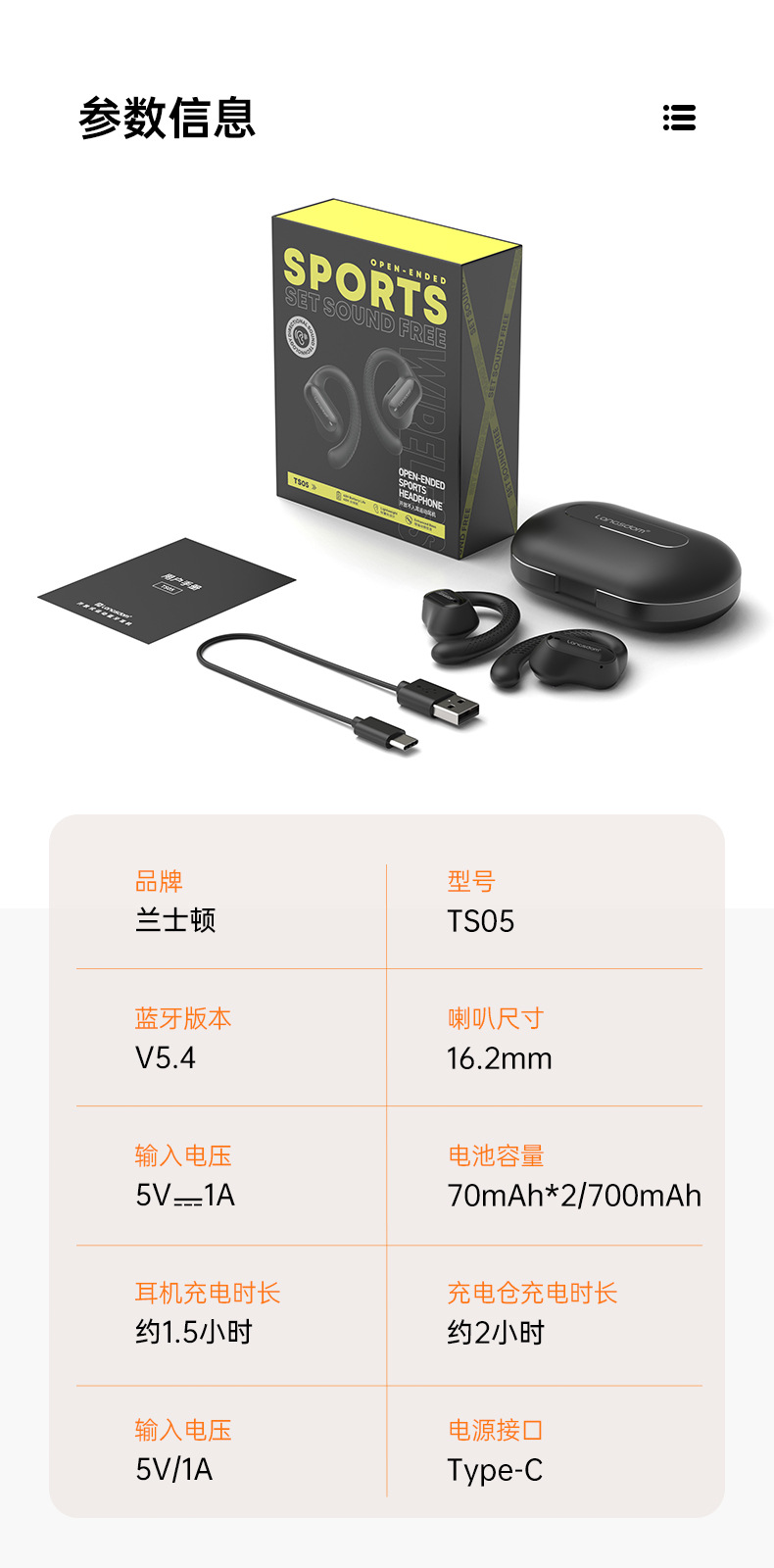 蘭士頓TS05藍牙耳機掛耳式骨傳導概念開放不入耳通話降噪運動跑步