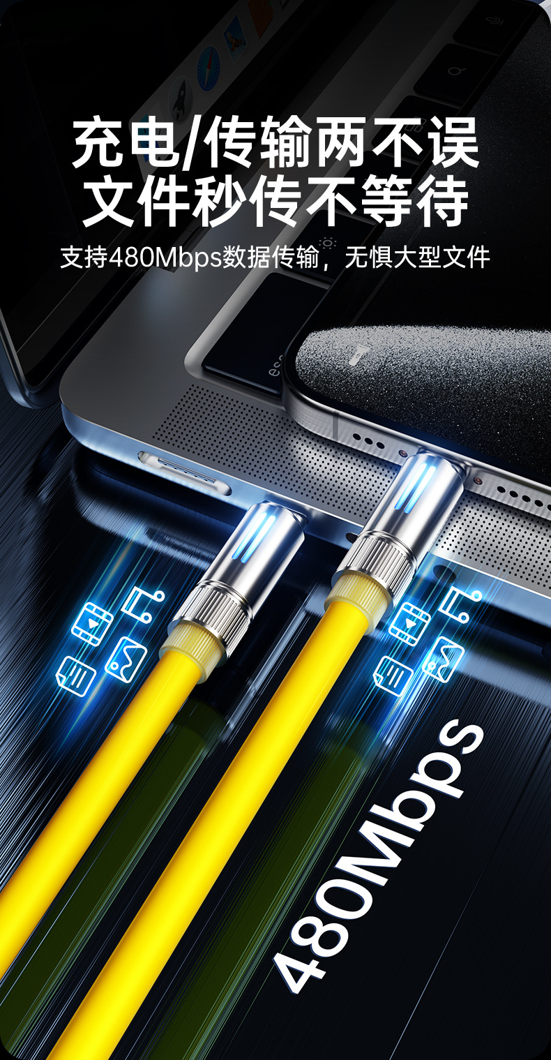升級矽膠線身【黃色】A-C接口