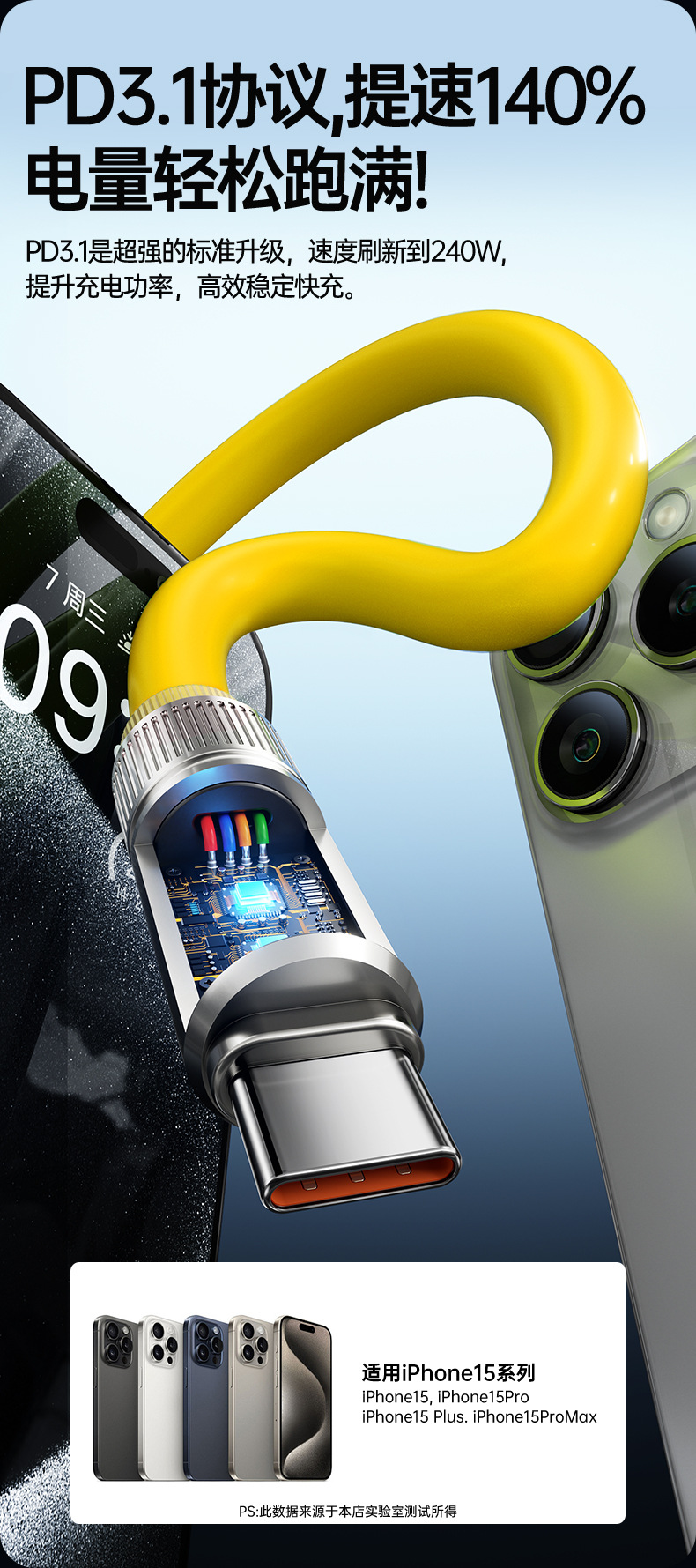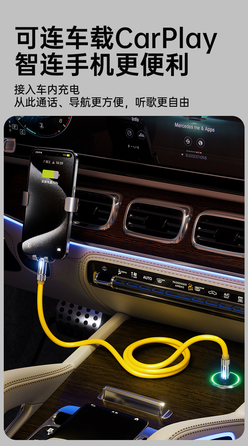 手機車用PD3.1數據線發光燈顯適用蘋果全系16華爲多兼容雙TypeC線