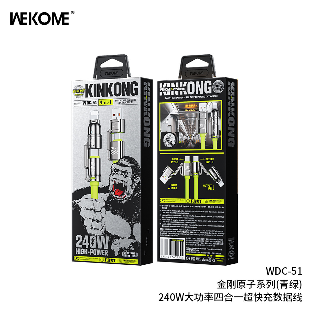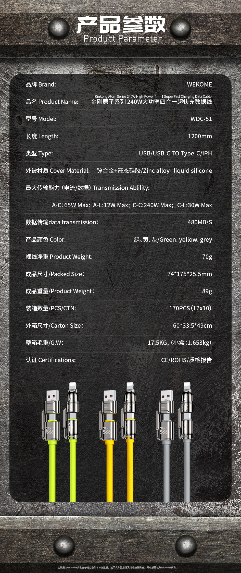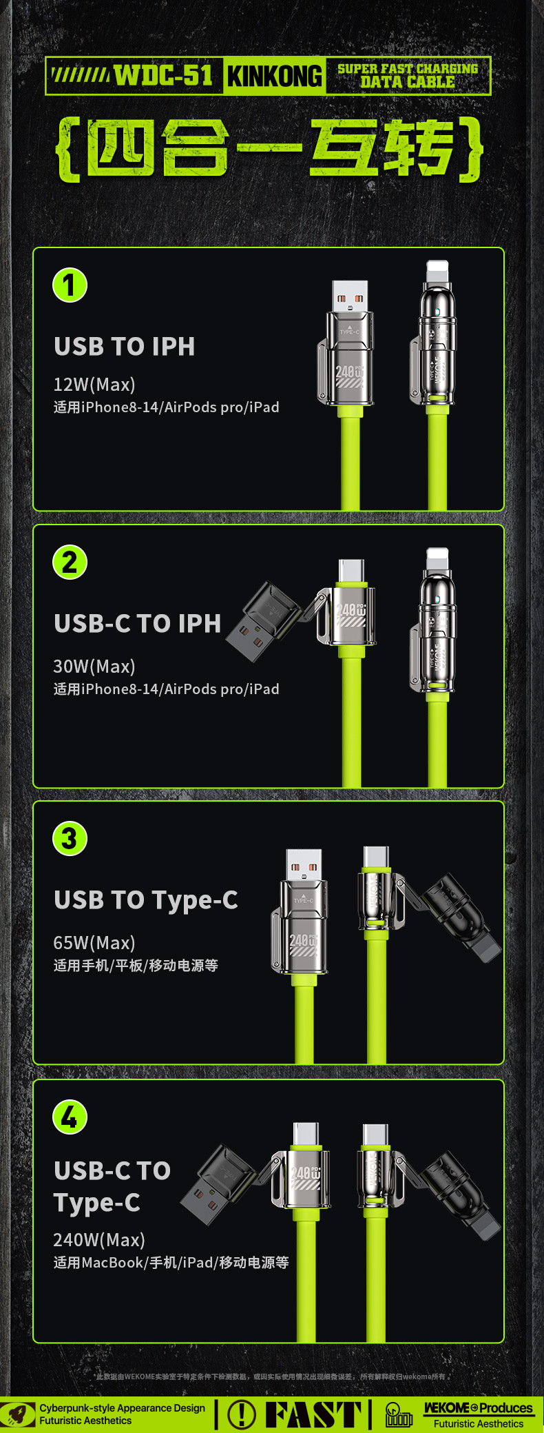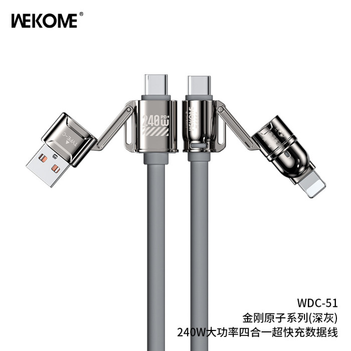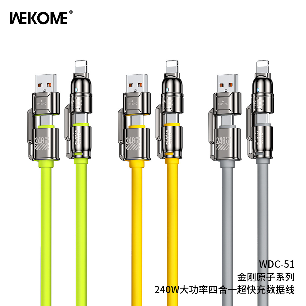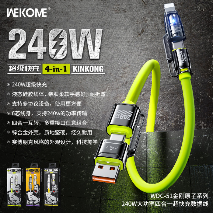 WEKOME四合一超級快充手機數據線 240W矽膠雙type-c二拖二充電線
