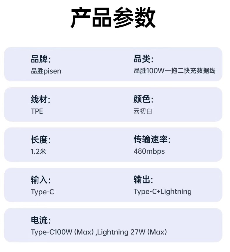 雲初白1.2米【typec-拖二】100W快充*手機平板通用