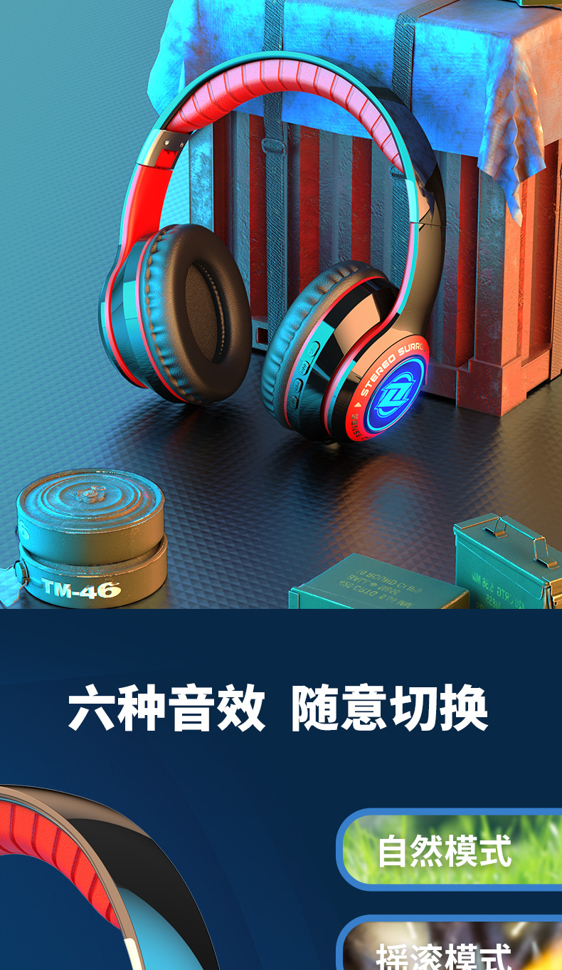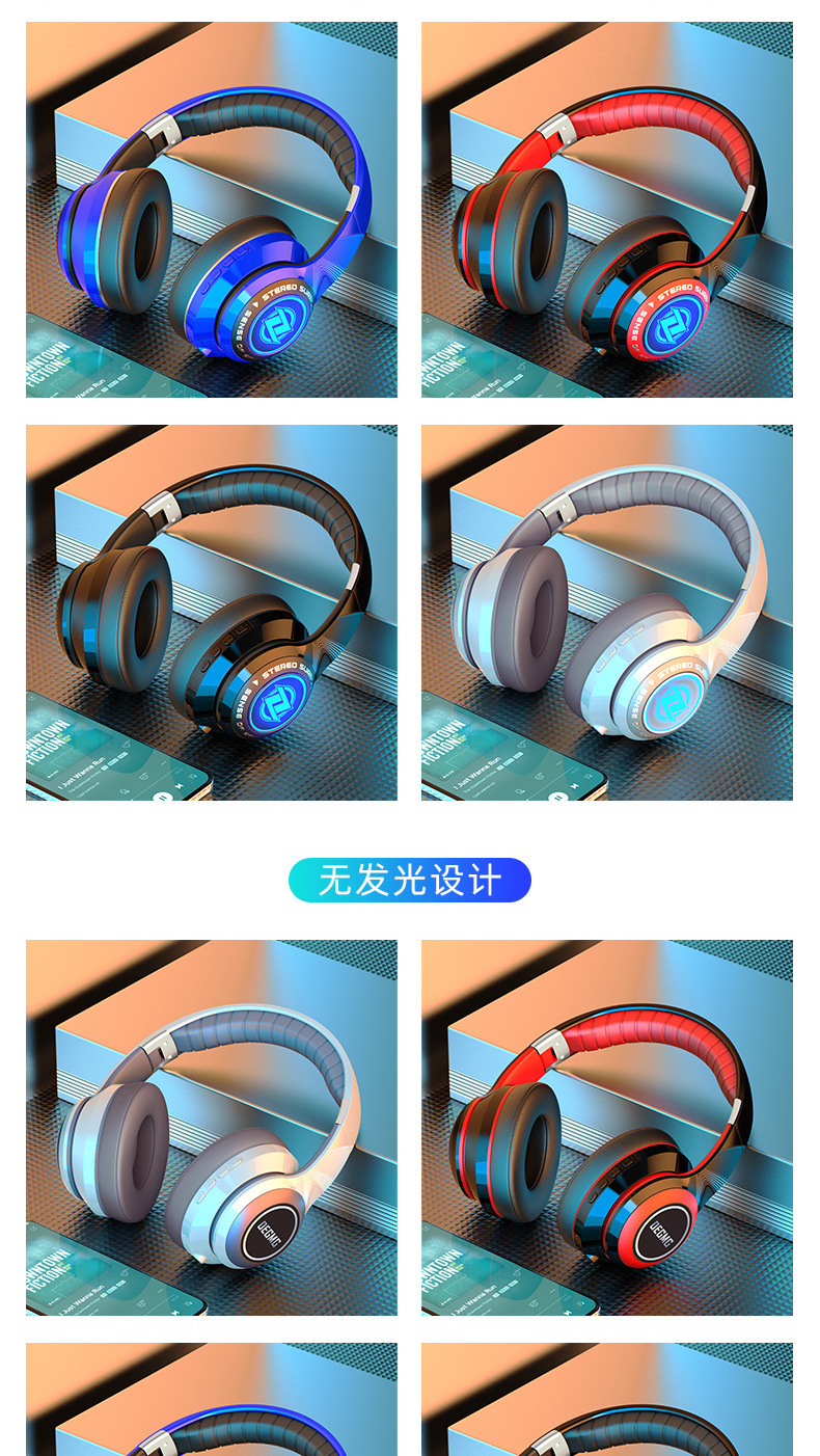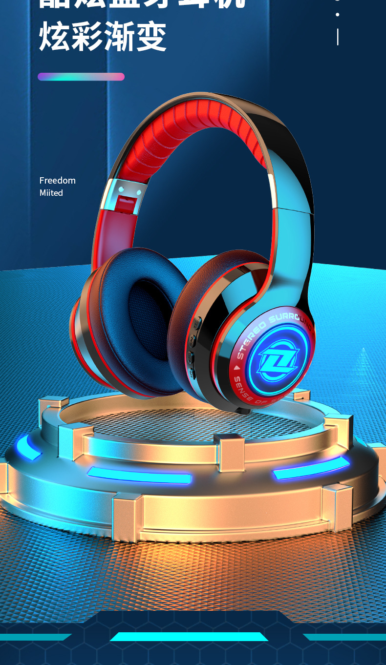 新款發光頭戴式無線藍牙耳機重低音聽歌電競遊戯專用手機電腦通用