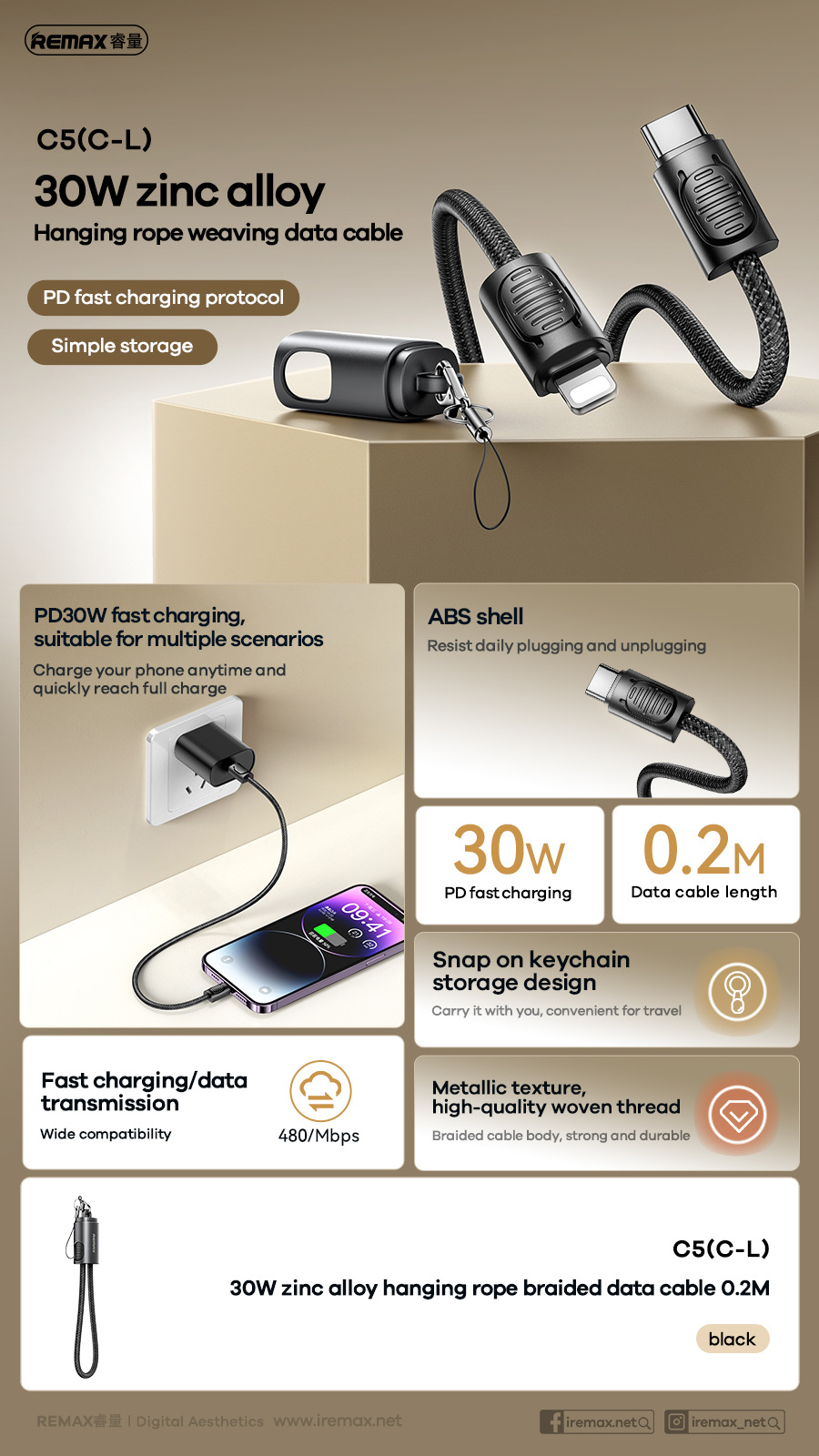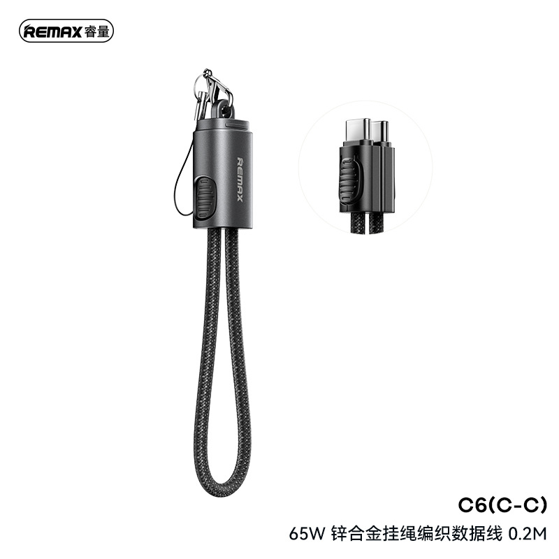 remax 鋅合金Type-C口快充線掛繩快充數據線手機充電線編織快充線