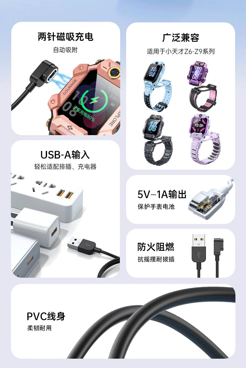 品勝適用小天才充電線電話兒童手錶充電器Z7/Z9/Z6/Z9少年版兒童