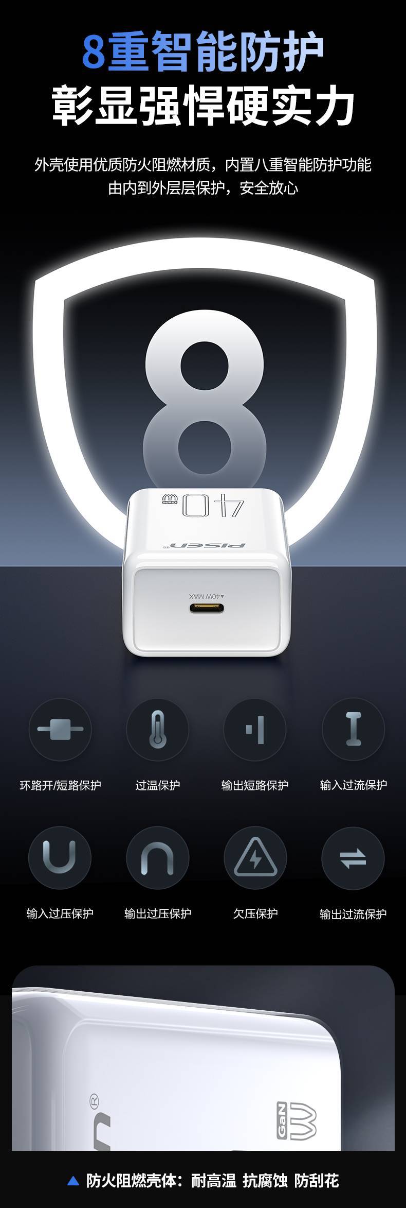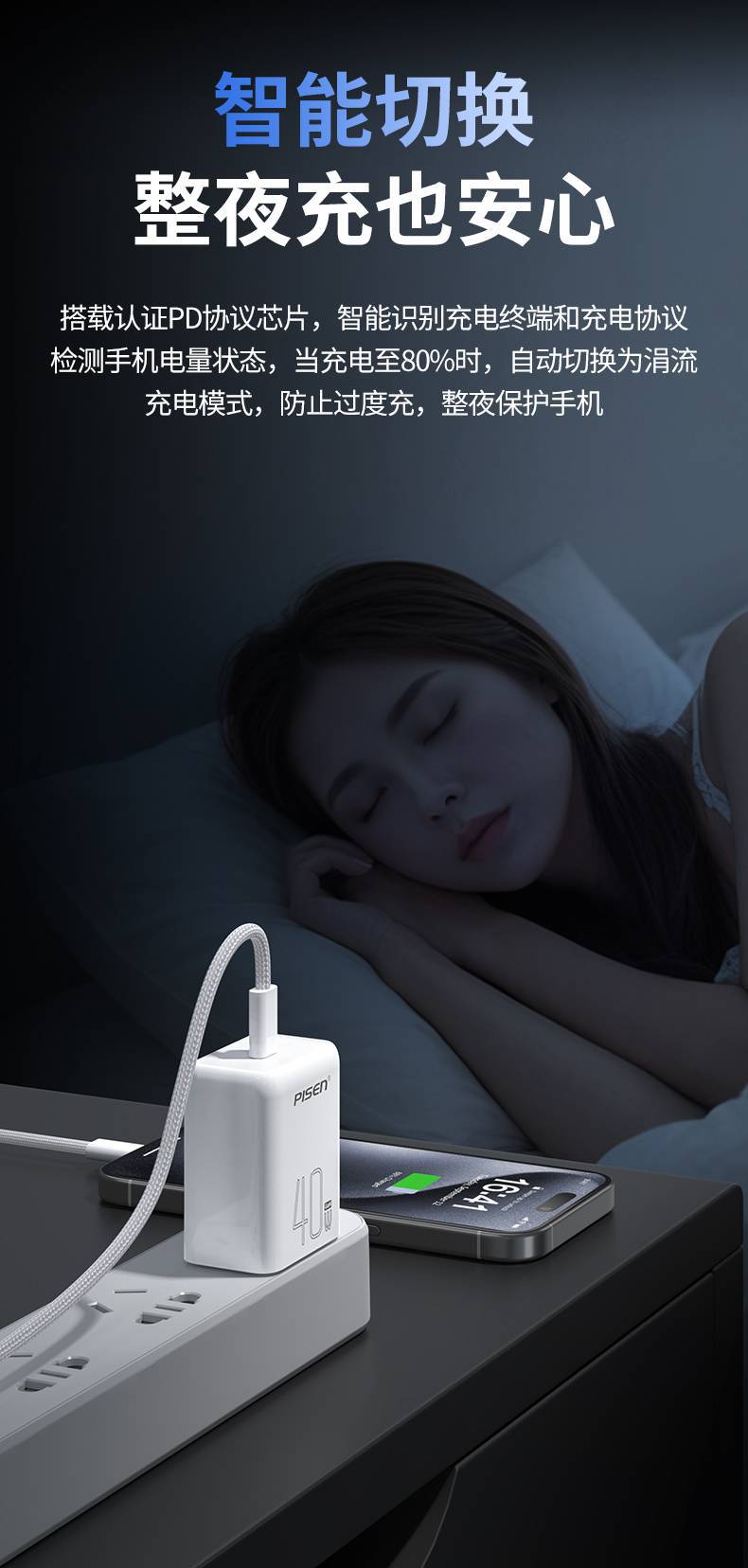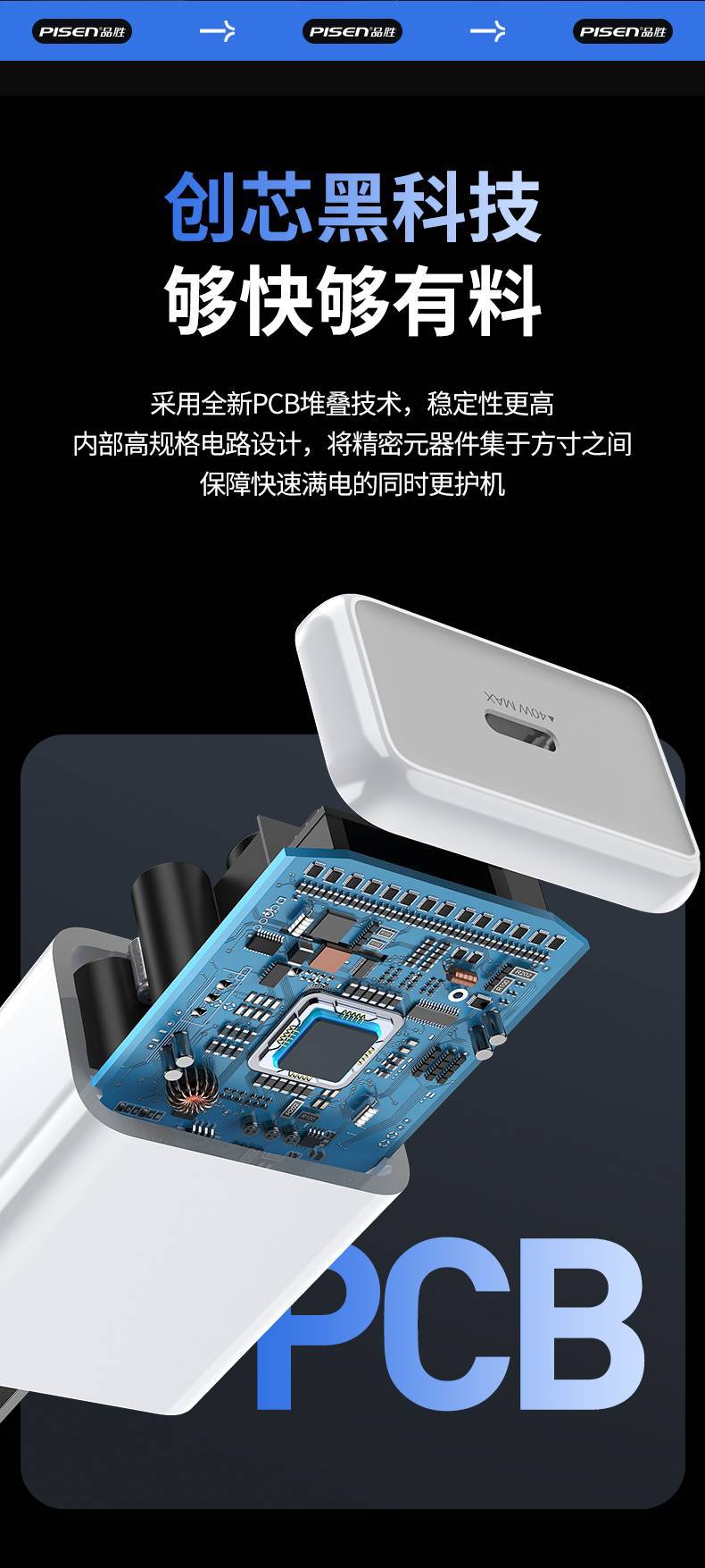 品勝40W氮化鎵充電器適用華爲蘋果手機快充電頭Type-C數據線套裝