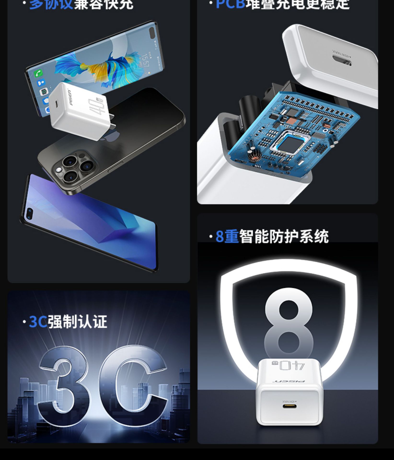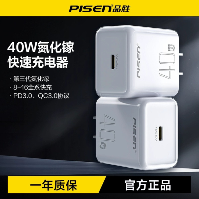品勝PD40W氮化鎵充電器快充適用iPhone16PMax快速蘋果15pro手機充